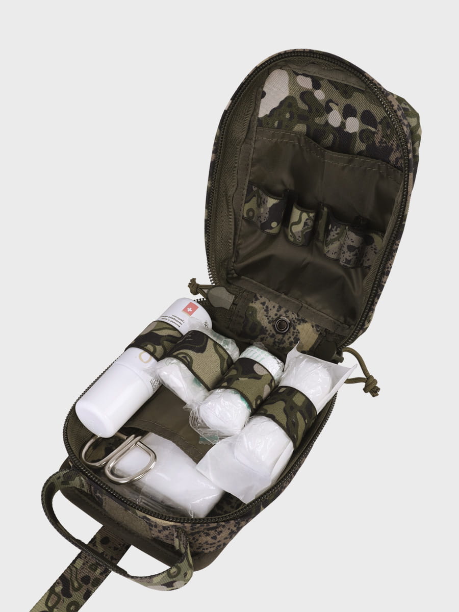 Zrywana Apteczka marki Maskpol jest połączeniem specjalnie zaprojektowanej kieszeni i Uniwersalnego Wkładu Medycznego. Całość pozwala na wygodne rozłożenie wszystkich podstawowych środków pierwszej pomocy w przemyślany sposób – poczynając od rękawiczek, przez gazy, bandaże po środek odkażający i nożyczki.