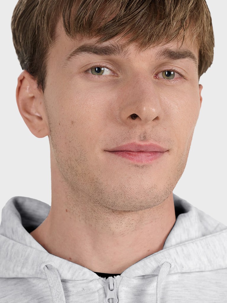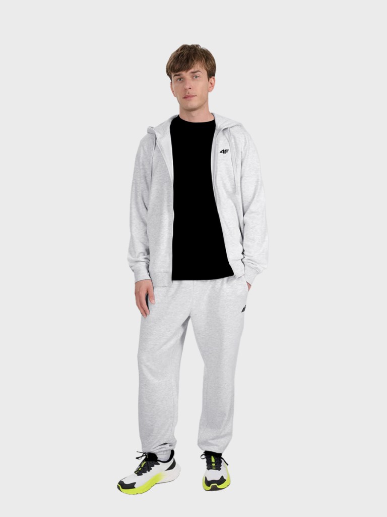 BLUZA MĘSKA DRESOWA TSWSM1768 ROZPINANA Z KAPTUREM JASNYSZARY MELANŻ