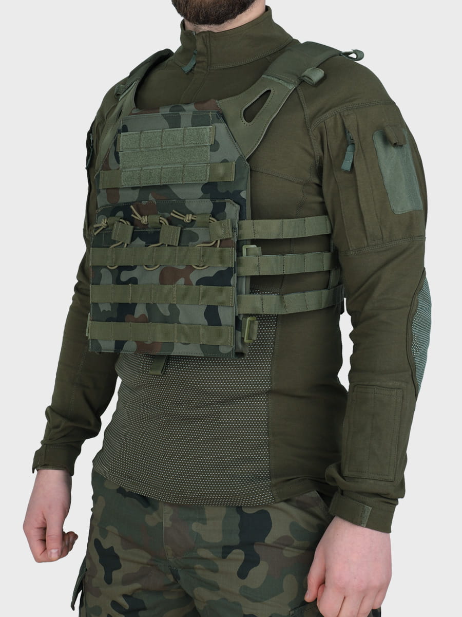 - Panele Velcro na ramionach umożliwiają przytwierdzenie dowolnych emblematów