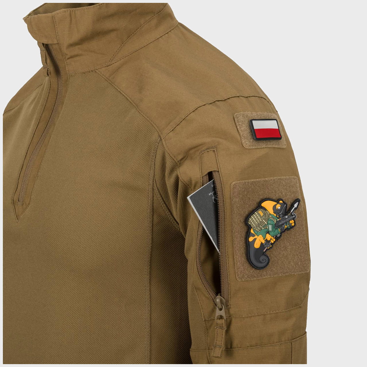 Podwójne panele Velcro na ramionach umożliwiają szybką i sprawną personalizację za pomocą różnych naszywek.