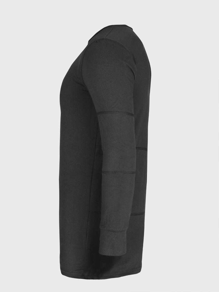 Wojskowa bluza termiczna z długim rękawem to solidny i komfortowy element odzieży. Zaprojektowana jako wojskowa pierwsza warstwa, świetnie sprawdza się również w codziennym użytkowaniu dzięki prostemu fasonowi i wygodnej konstrukcji. Miękki, oddychający materiał zapewnia wysoki komfort przez cały dzień, a polarowe podszycie w okolicy łokci oraz środkowej części pleców zwiększa izolację cieplną podczas niskich temperatur.
