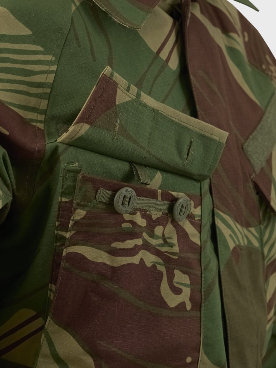Posiada osiem kieszeni, w tym klasyczne kieszenie na piersi, kieszenie wewnętrzne na mapę czy notatnik oraz kieszenie na rękawach z opcją zapinania na rzepy lub guziki kanadyjskie.