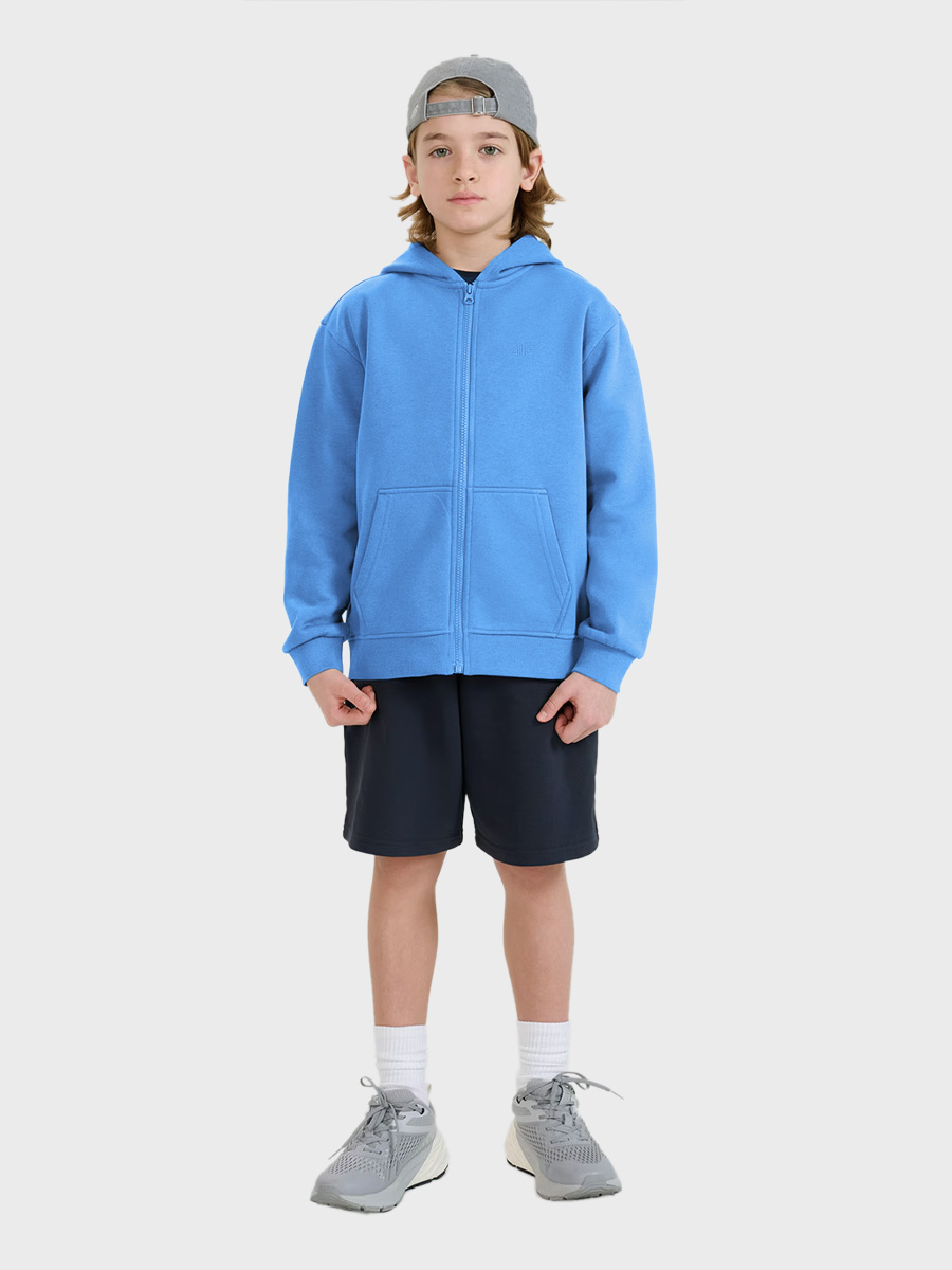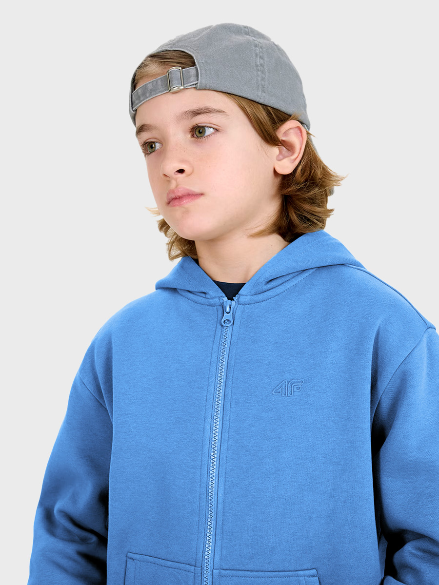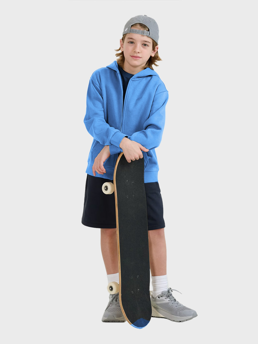 Bluza dresowa chłopięca rozpinana marki 4F to połączenie komfortu i praktyczności. Wykonana z miękkiej bawełny z dodatkiem poliestru, posiada oversizowy krój, czesane wnętrze oraz kaptur, co sprawia, że idealnie nadaje się zarówno do szkoły, jak i aktywności na świeżym powietrzu.