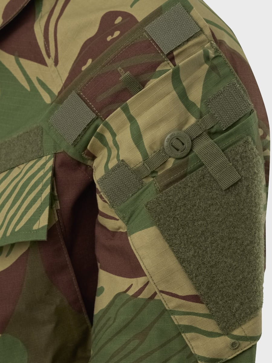 Rękawy wszyte bezpośrednio w kołnierz, eliminując szwy na ramionach, co zapewnia większy komfort noszenia, zwłaszcza pod oporządzeniem lub plate carrierem.