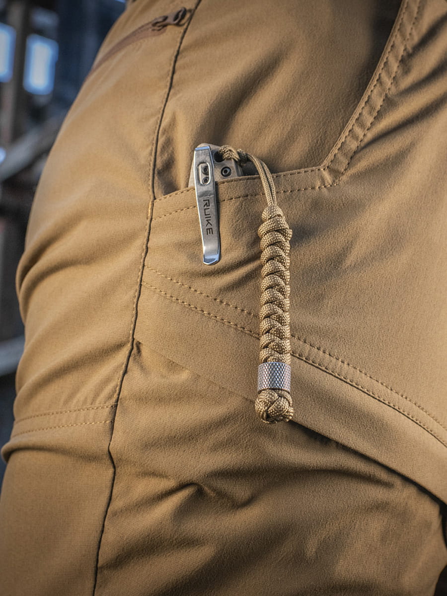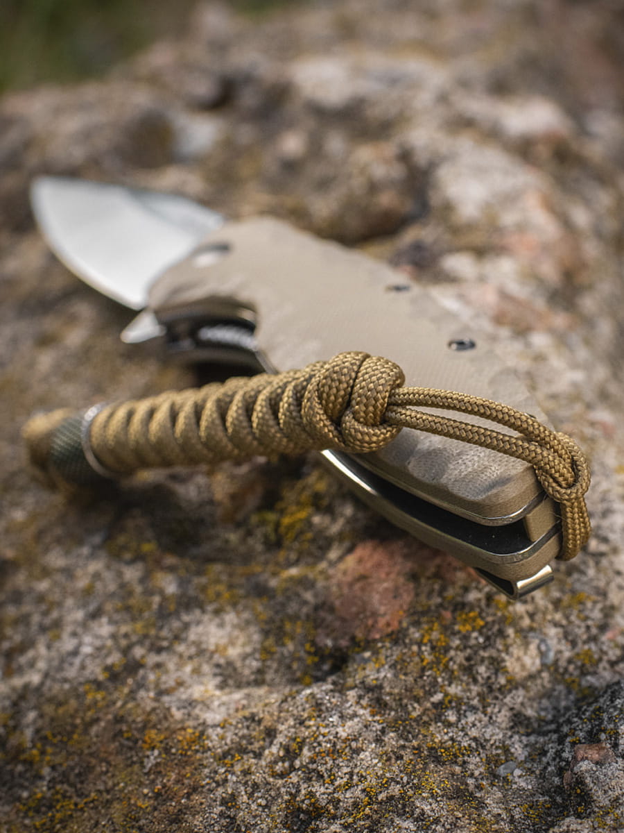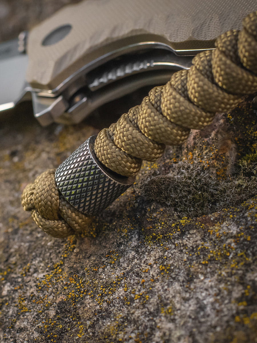 Jest to sznurek zapasowy, który zawsze jest pod ręką. Jednocześnie jest to elastyczne przedłużenie rękojeści, dzięki któremu w kilka sekund wyjmiesz nóż z kieszeni spodni.