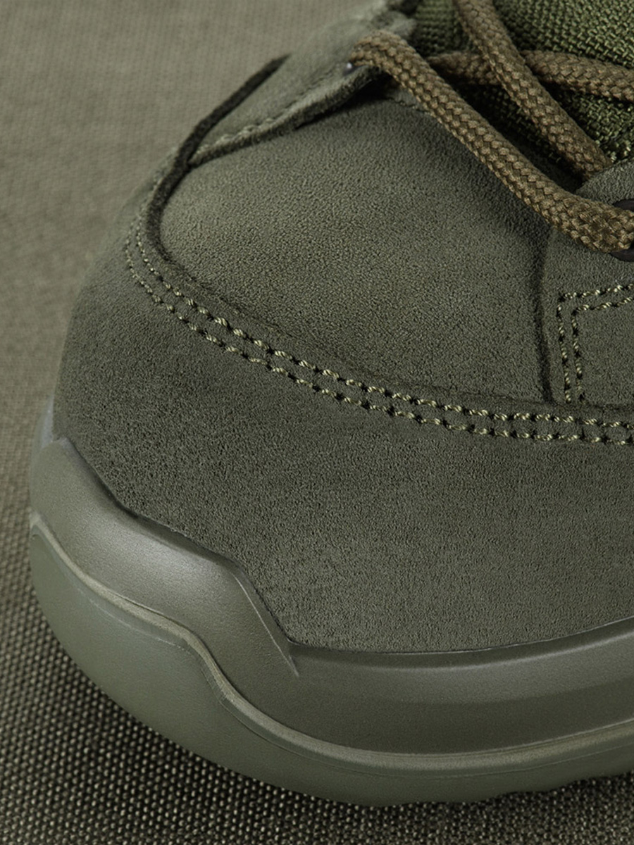 Zamszowa cholewka i gumowane wzmocnienia chronią przed uszkodzeniami i wilgocią.