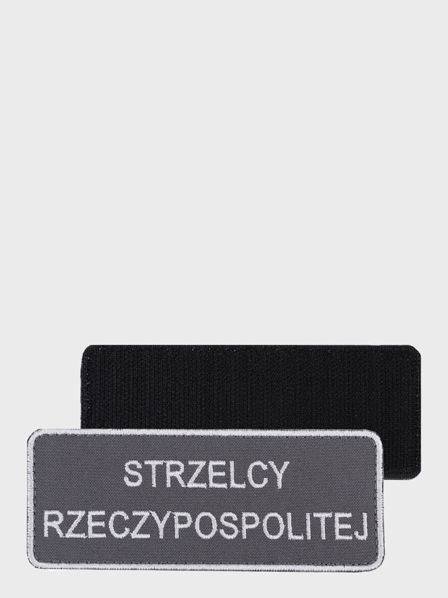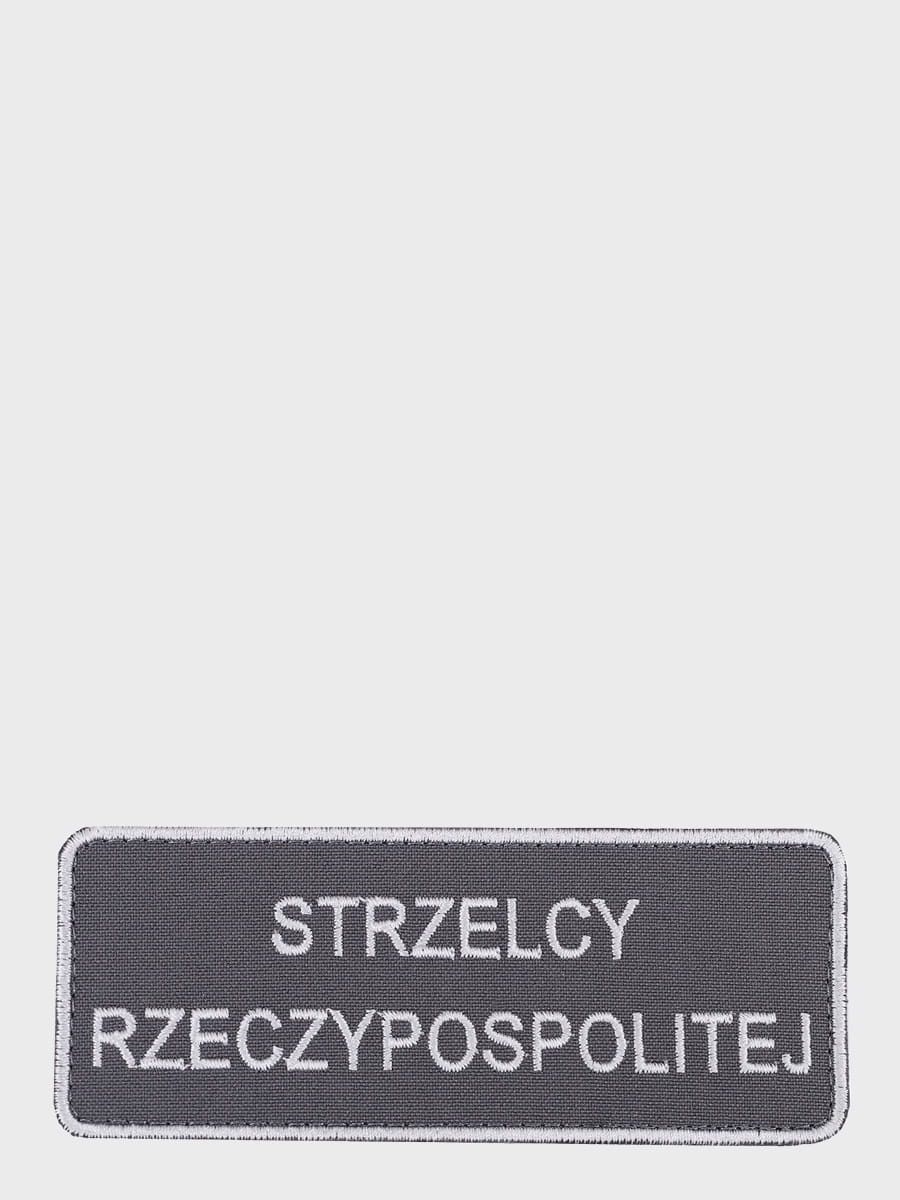 Emblemat z napisem Strzelcy Rzeczypospolitej, wyprodukowany z solidnego poliestru.
