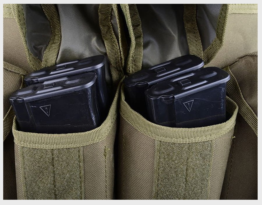 Kamizelka Commando posiada 4 podwójne zasobniki z wewnętrznymi przegrodami – pozwala przenosić 8 magazynków w standardzie AK / M4. Zasobniki na magazynki zamykane są klapami wyposażonymi w rzepy i zatrzaski. Dodatkowo po bokach znajdują się – zamykane klapami z klamrami typu fastex – 2 uniwersalne ładownice, które mogą posłużyć do przenoszenia granatów, radia lub innego wyposażenia.
