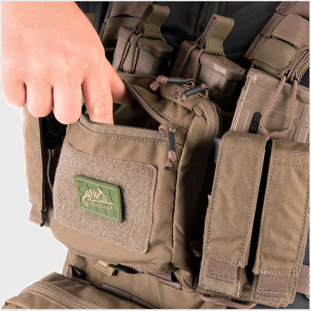 Posiada trzy panele velcro: na kieszeni głównej, na dopinanej kieszeni akcesoryjnej oraz z tyłu na szelkach - dzięki którym można przymocować ulubioną naszywkę lub morale patcha.