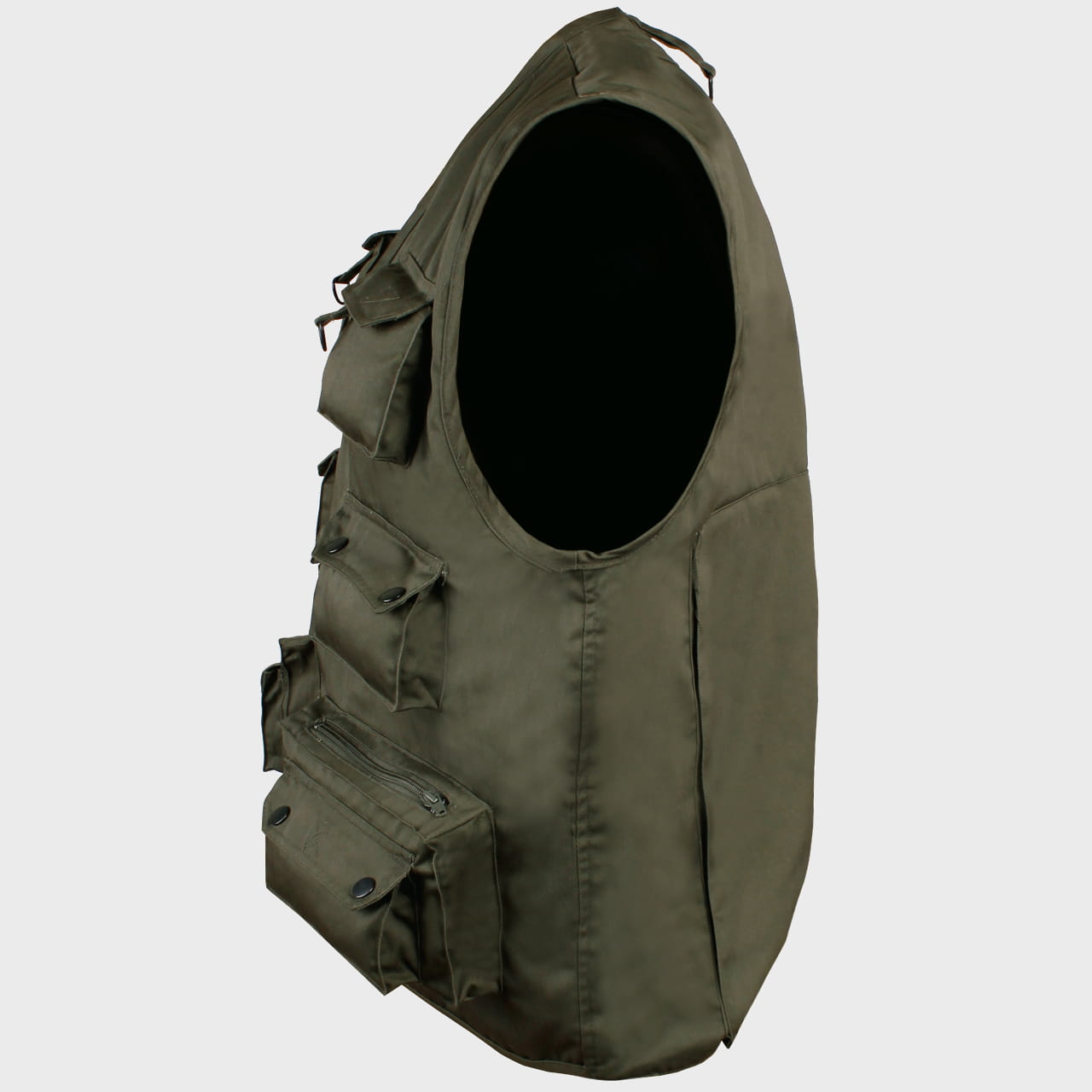 Kamizelka zamykana jest zamkiem błyskawicznym. Patka z zatrzaskiem umożliwia zaczepienie na przykład paska od aparatu fotograficznego, dzięki czemu nie obija się on o ciało podczas spacerowania. Na plecach umieszczona jest duża kieszeń zamykana zamkiem.