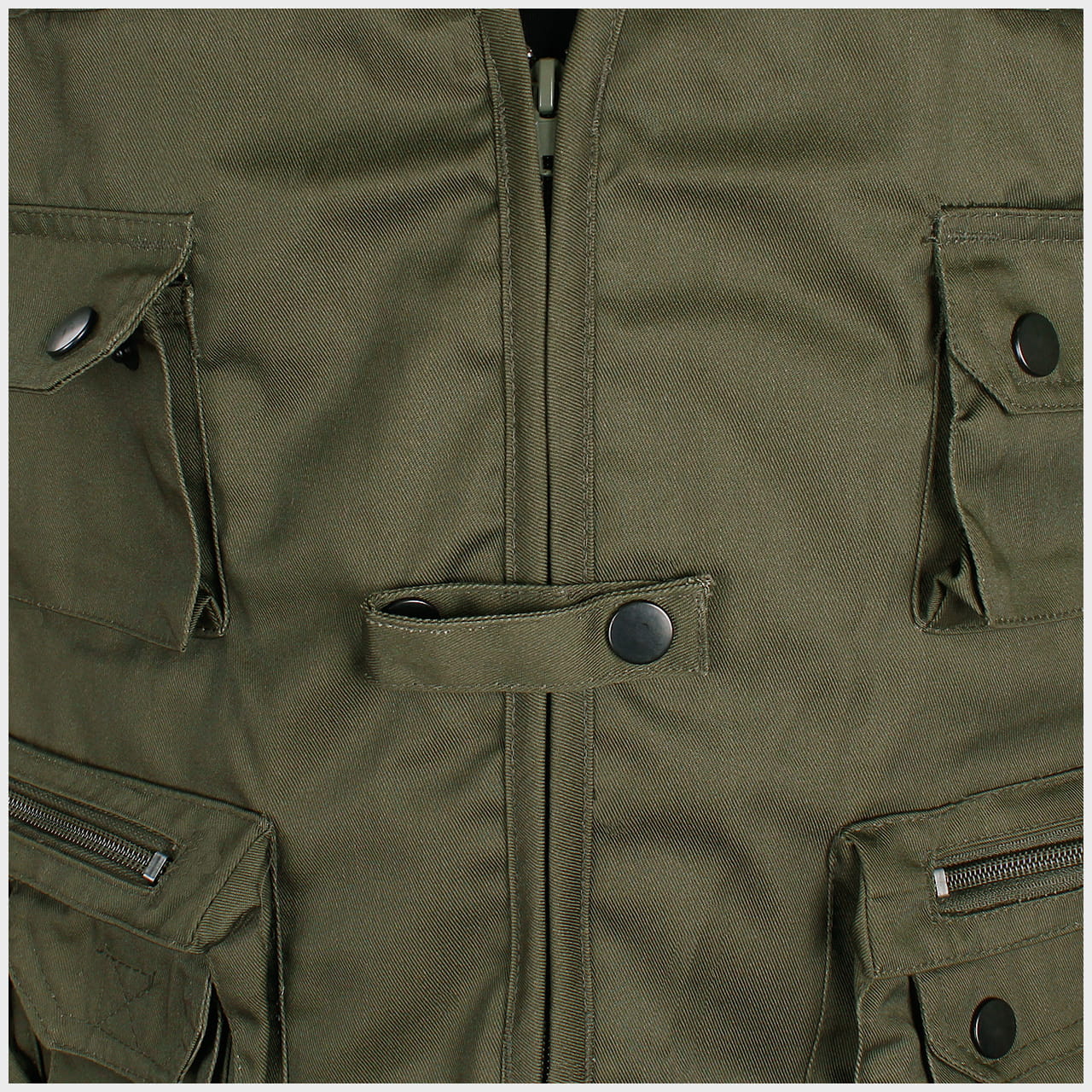 Kamizelka zamykana jest zamkiem błyskawicznym oraz patką z zatrzaskiem. Zaletą tej patki jest możliwość zaczepienia na przykład paska od aparatu fotograficznego, dzięki czemu nie obija się on o ciało podczas spacerowania.