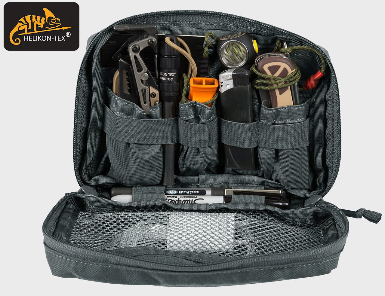 Organizer Large firmy HELIKON pozwala na przechowywanie i przenoszenie najpotrzebniejszych przedmiotów codziennego użytku, dzięki dużej pojemności komory łatwo można w nim zmieścić rzeczy takie jak nóż lub scyzoryk, latarka, leki, długopis itp.
