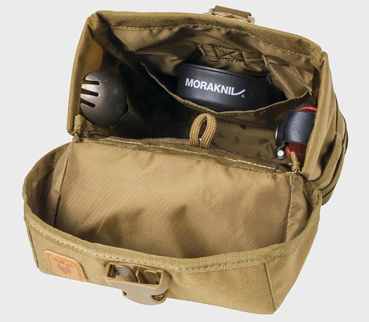 Pomieści podstawowe wyposażenie survivalowe i bushcraftowe, manierkę, racje żywnościowe i podobne przedmioty.