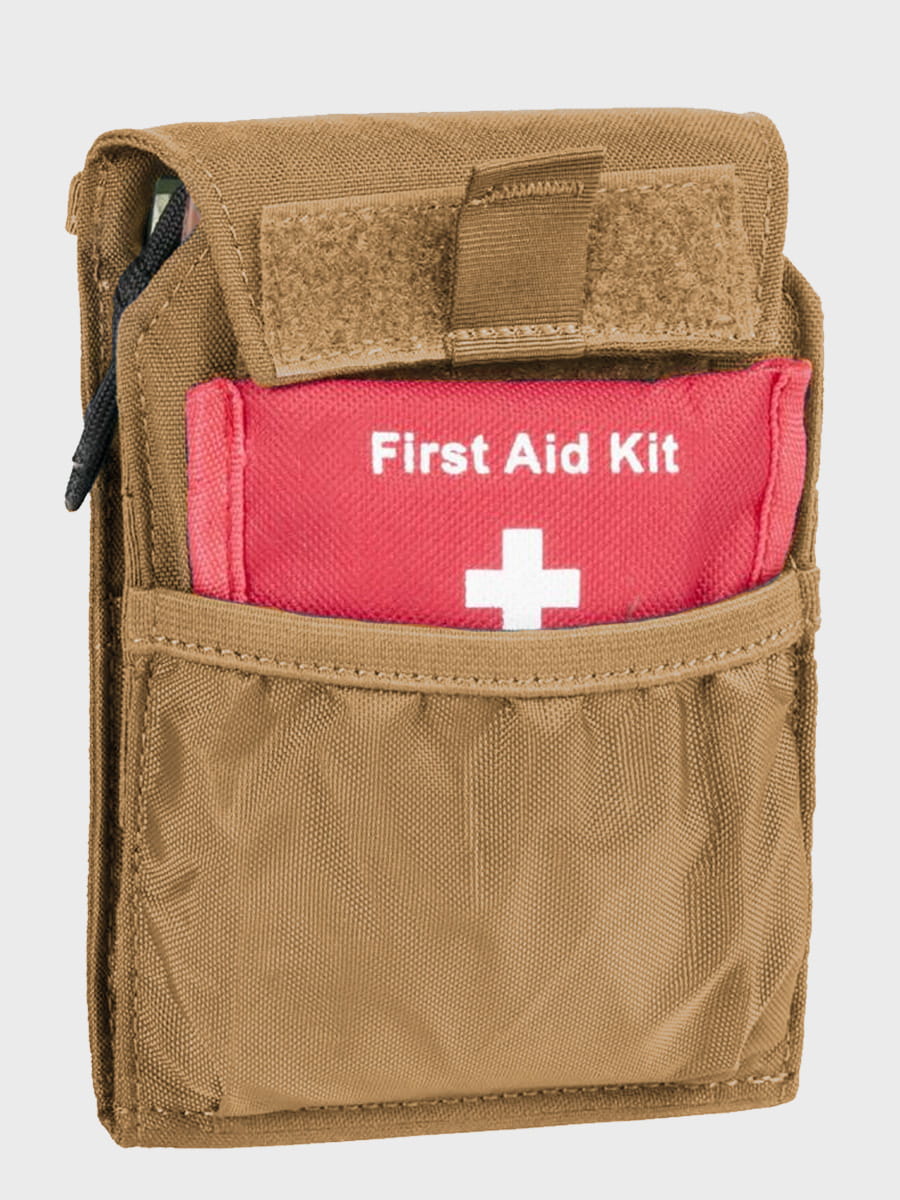 Zewnętrzna część poucha zawiera w sobie kieszeń zamykaną na suwak, 2 płaskie kieszenie, uchwyt z paracordu i cztery elastyczne pętle.