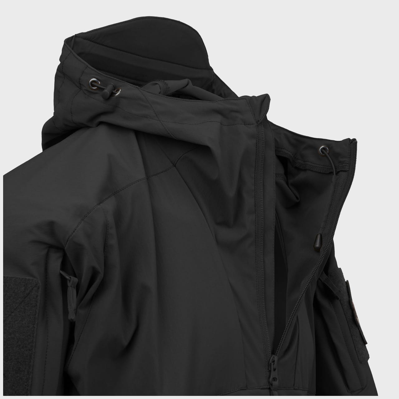 Kurtka Helikon Mistral firmy Helikon to połączenie klasycznego kroju kurtki anorak z nowoczesnymi rozwiązaniami materiałowymi. Kurtka jest wykonana z softshellowego materiału StormStretch, który zapewnia ochronę przed wiatrem, lekkim deszczem czy śniegiem, przy jednoczesnym zachowaniu odpowiedniej oddychalności. Materiał jest lekki i umożliwia skompresowanie kurtki do niewielkich rozmiarów.