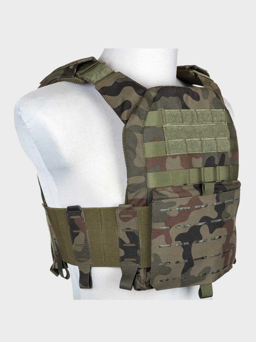 Dzięki systemowi MOLLE Laser Cut i kompatybilności z systemami MOLLE/PALS, oferuje pełną modularność i możliwość dostosowania do różnych zadań. Lekka konstrukcja, miękkie comfortpady oraz siatka dystansowa dbają o wygodę użytkowania, czyniąc tę kamizelkę idealnym wyborem do dynamicznych działań w terenie.