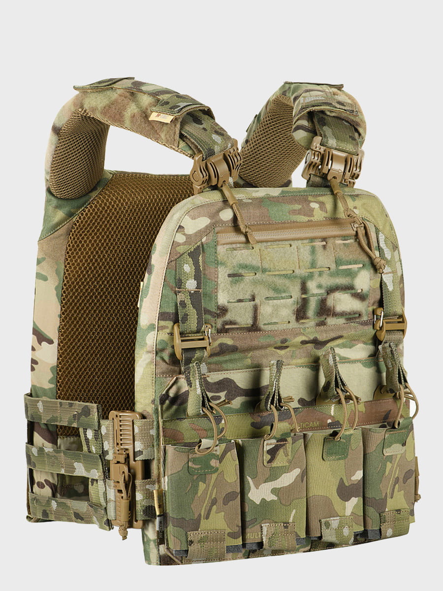 Opracowana przez projektantów marki dla standardowych płyt balistycznych ESAPI (USA) Extra Large (35,5 x 28 cm). Ponadto za pomocą wewnętrznych pasków można dopasować kamizelkę do rozmiaru Large (33,7 x 26 cm).