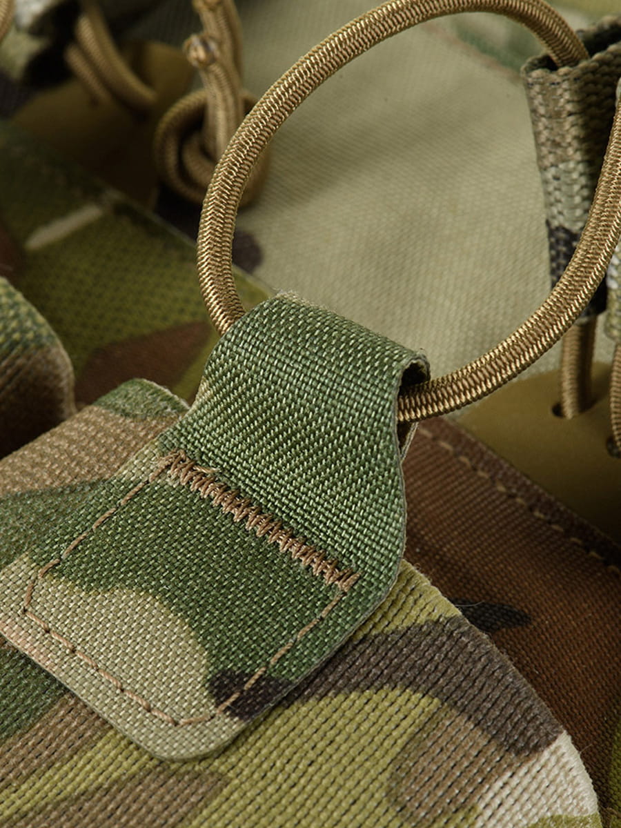 Pod kamizelką znajduje się szybko zdejmowany moduł z 4 ładownicami, które w niezawodny sposób utrzymują magazynki. Aby uniknąć przypadkowego zerwania paneli Velcro, mocuje się ją do kamizelki za pomocą karabinków Woojin.