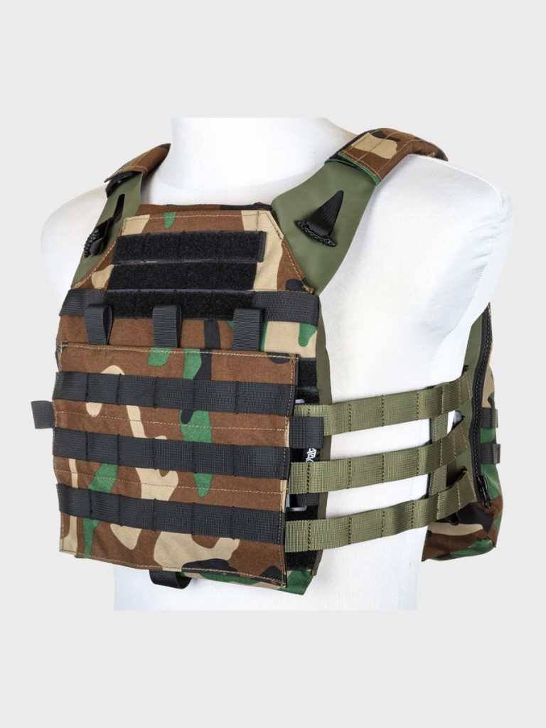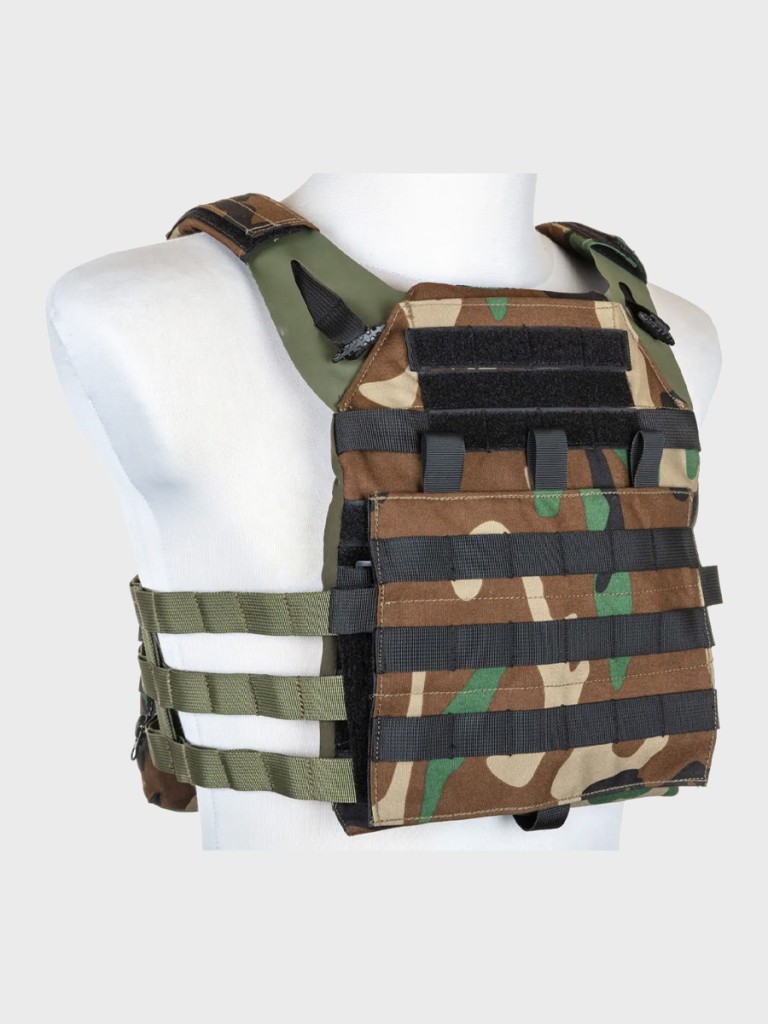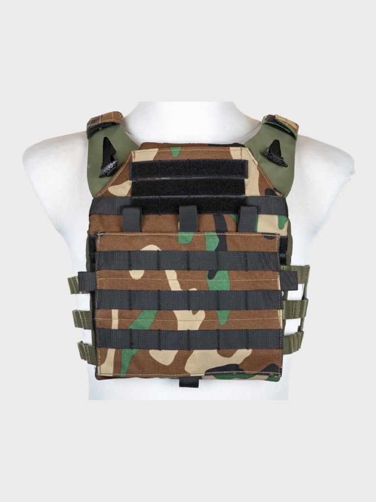 Kamizelka taktyczna Plate Carrier z panelem szturmowym Woodland