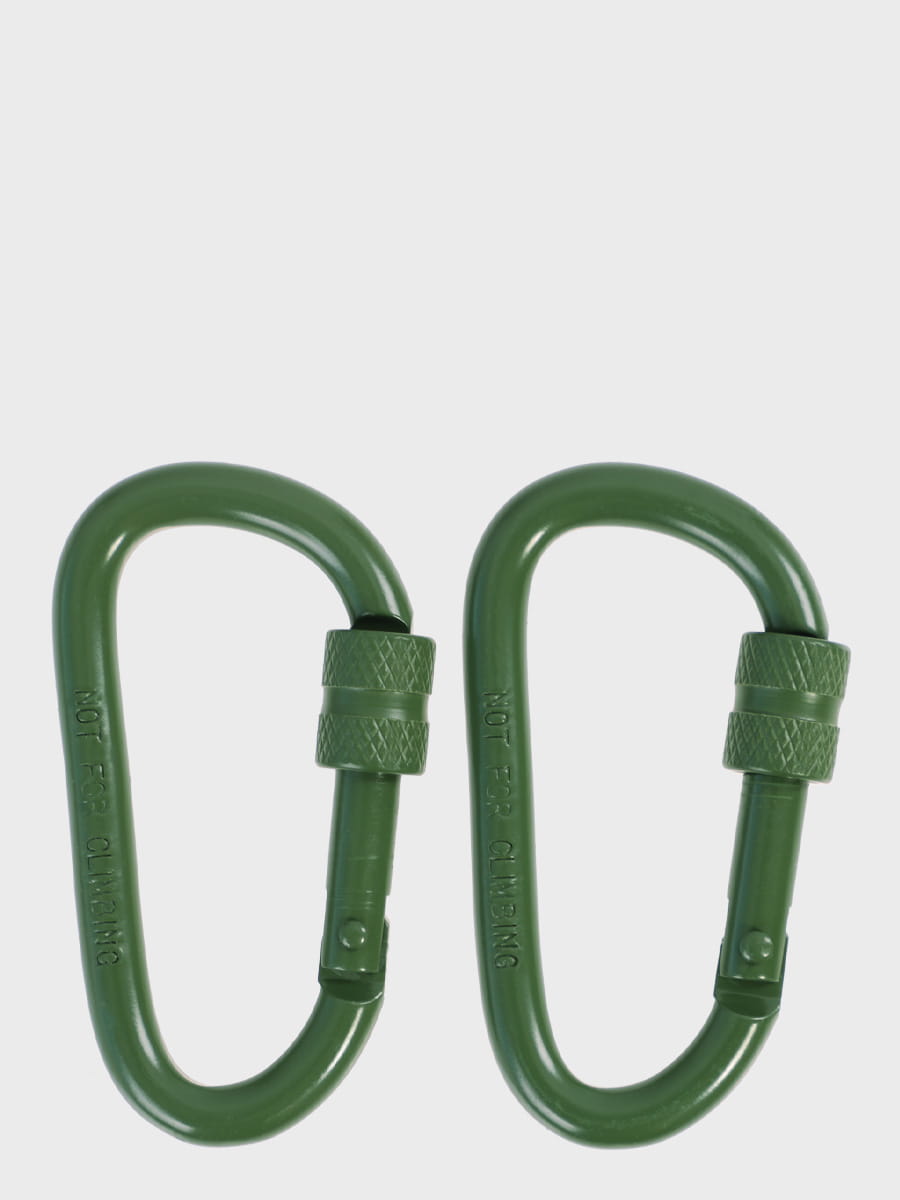 Zestaw dwóch karabińczyków w kształcie litery D wykonanych z lekkiego aluminium. Specjalna śruba wkręcana na dźwignię dodatkowo zabezpiecza karabińczyk przed otwarciem.