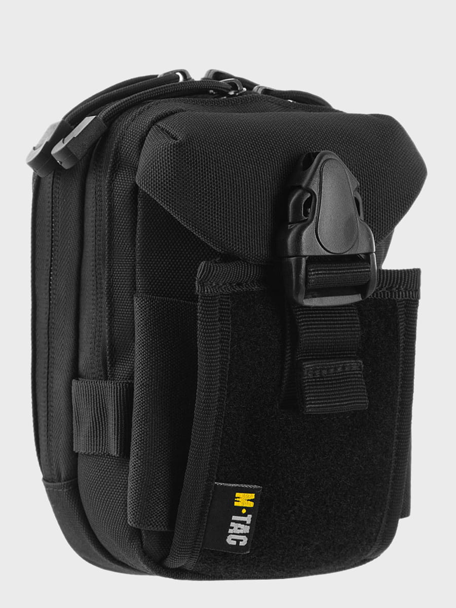 Na przedniej powierzchni organizera jest zainstalowany panel z rzepem do mocowania naszywek i identyfikatorów. Po bokach torby znajdują się pętle do mocowania dodatkowego wyposażenia.
