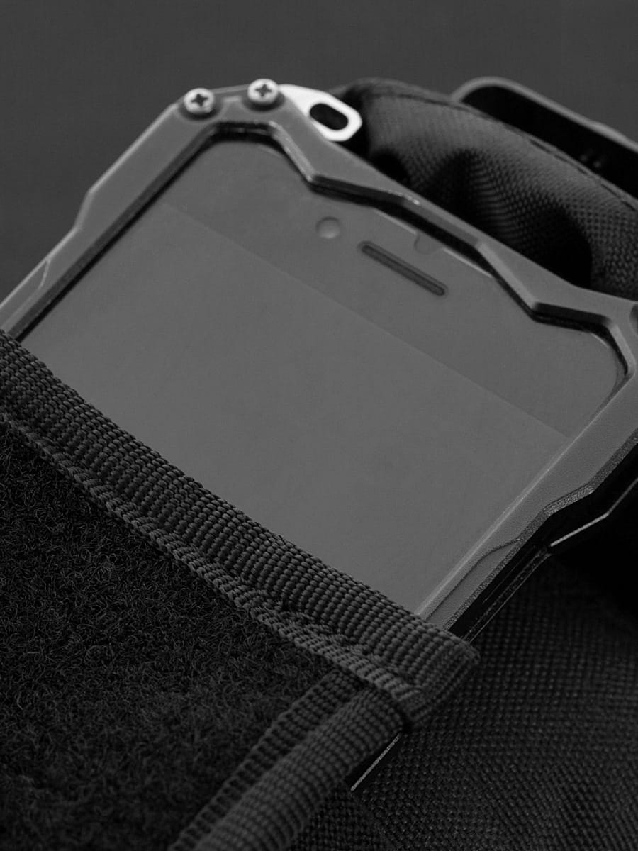 Boki małej komory są wykonane z szerokiej elastycznej taśmy, aby uzyskać bardziej zwarty wygląd. W tej przegrodzie można umieścić telefon o przekątnej do 5,9 cala.