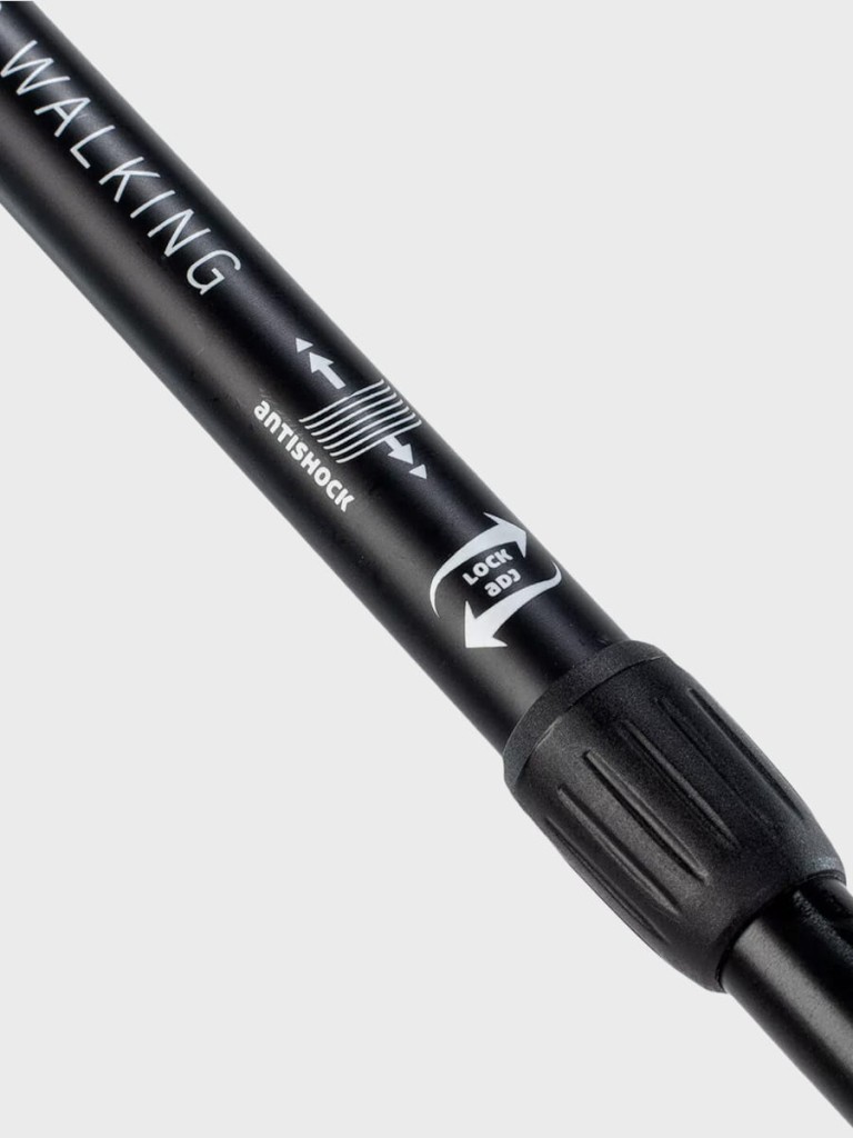 Kije Nordic Walking posiadają regulowane, zapinane rękawice. Umożliwiają one prawidłową technikę chodzenia. Dwusekcyjne kije wykonane zostały z aluminium, dzięki temu są bardziej wytrzymałe i stabilne. Z łatwością dopasujesz je do swojego wzrostu. System blokujący to śruba prawoskrętna, w której został zastosowany system Antishock. System Antishock podnosi komfort użytkowania kijów, niwelując siłę oddziałującą na nadgarstki i ramiona. Wymienne gumowe końcówki, tzw. buciki, tłumią drgania podczas styczności kijów z nawierzchnią.