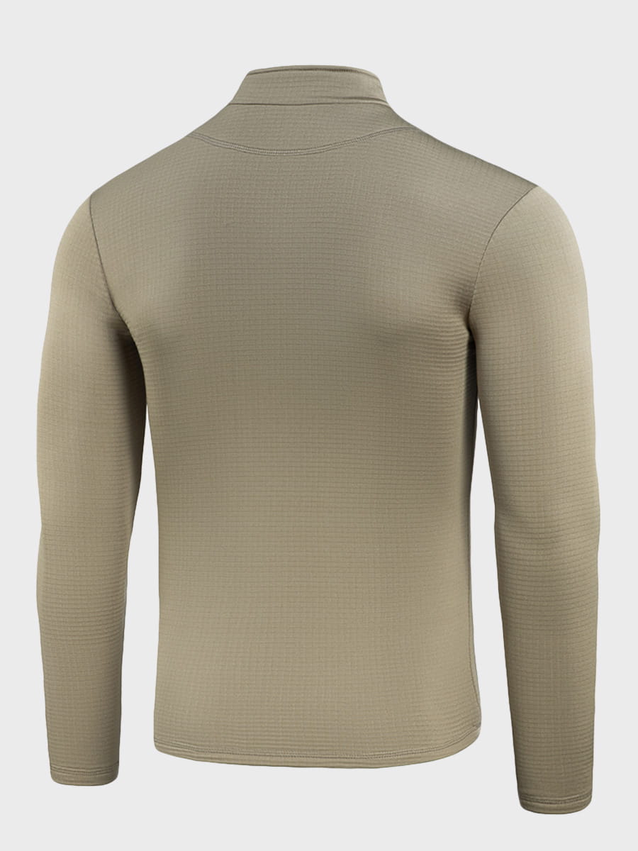 Uszyta z polaru o gramaturze 250 g/m2 i strukturze siateczki, która kumuluje ciepłe powietrze i odprowadza wilgoć na zewnątrz.