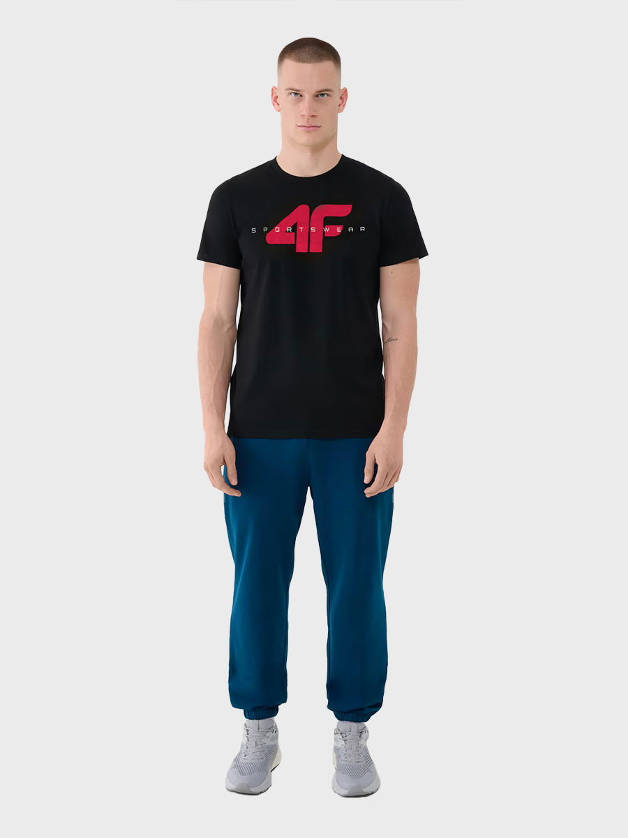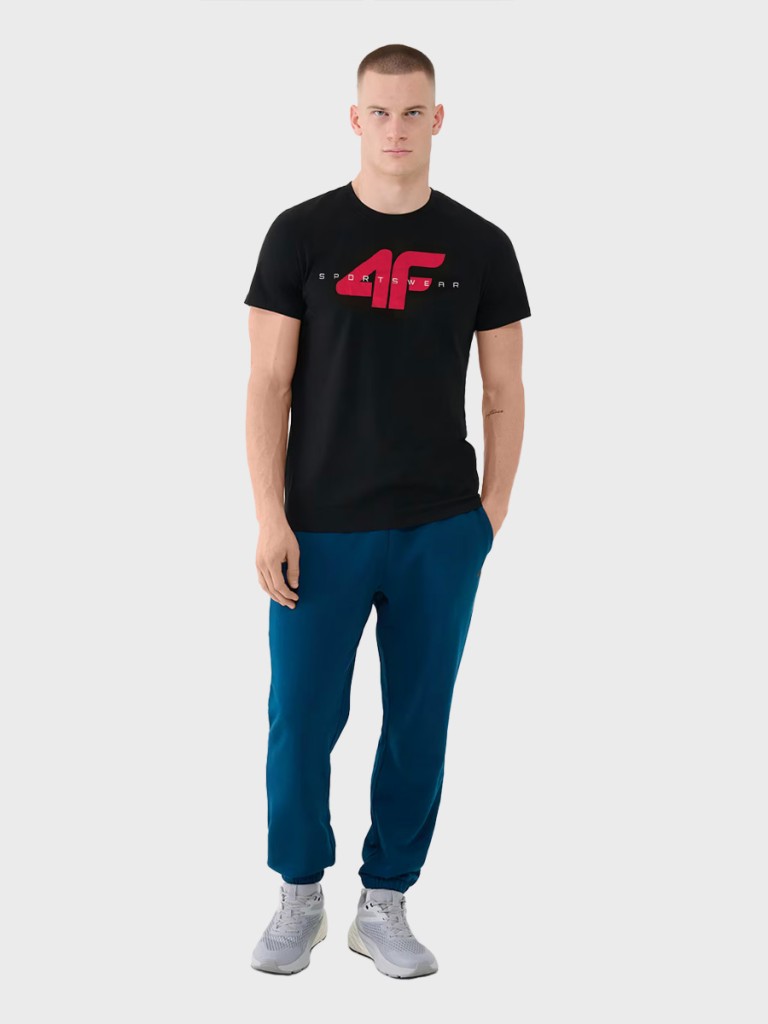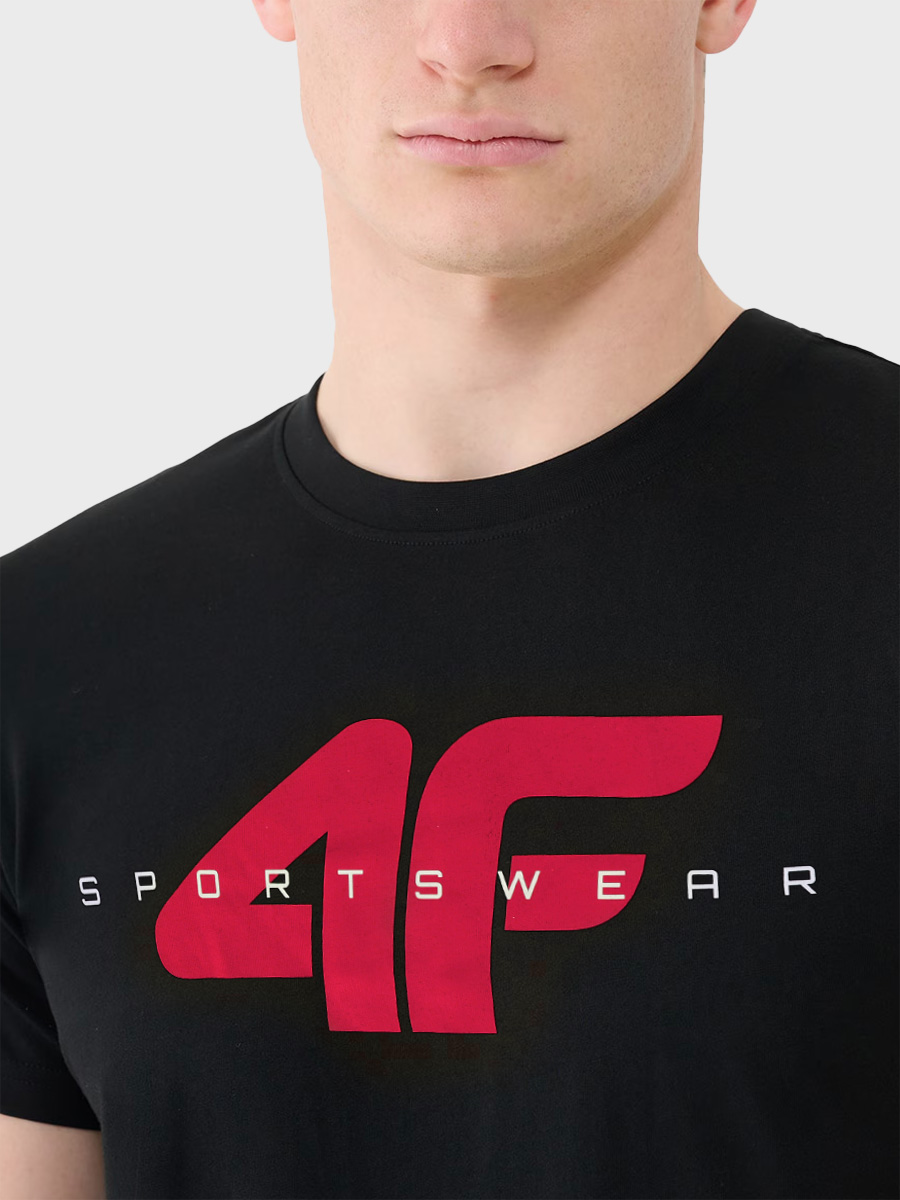 Męska koszulka z krótkim rękawem marki 4F to uniwersalna propozycja na co dzień. Dzięki klasycznemu krojowi, miękkiej bawełnie i nadrukowi, sprawdzi się zarówno w codziennych, jak i sportowych stylizacjach. Elastyczny materiał i przyjemna w dotyku dzianina single jersey zapewniają komfort przez cały dzień.