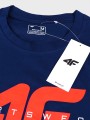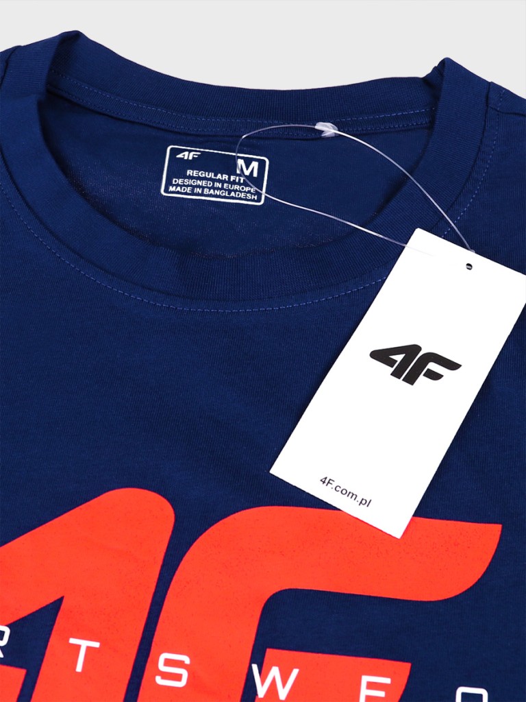Męska koszulka z krótkim rękawem marki 4F to uniwersalna propozycja na co dzień. Dzięki klasycznemu krojowi, miękkiej bawełnie i nadrukowi, sprawdzi się zarówno w codziennych, jak i sportowych stylizacjach. Elastyczny materiał i przyjemna w dotyku dzianina single jersey zapewniają komfort przez cały dzień.