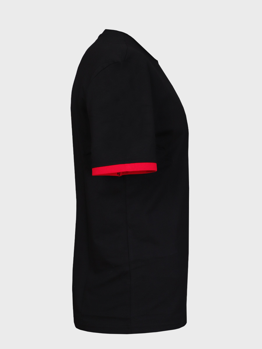- Krótki rękawek z kontrastową ściągaczową lamówką