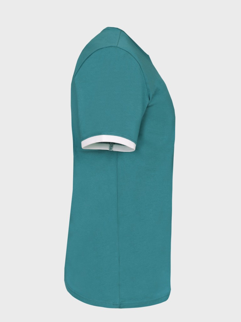- Krótki rękawek z kontrastową ściągaczową lamówką