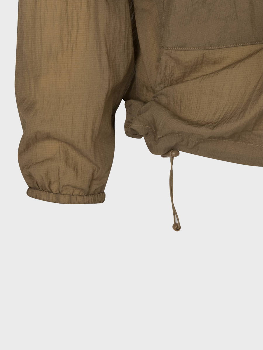 Ultralekki materiał nylonowy, z gęstym splotem, zapewnia ochronę przed wiatrem, a przy regularnym odnawianiu powłoki DWR także przed lekkim deszczem.