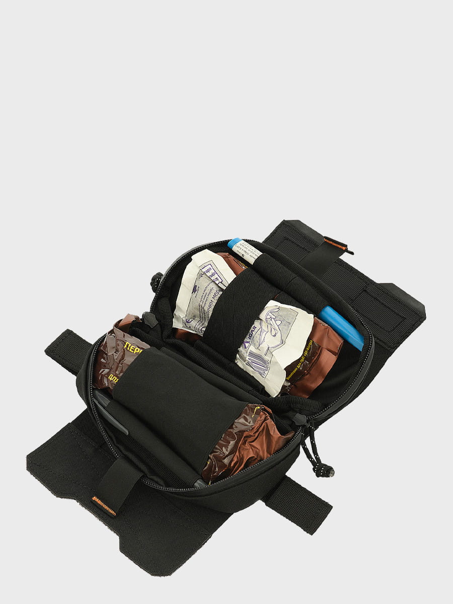 - Składa się z dwóch części: torba z wewnętrznym organizerem pod IFAK + baza