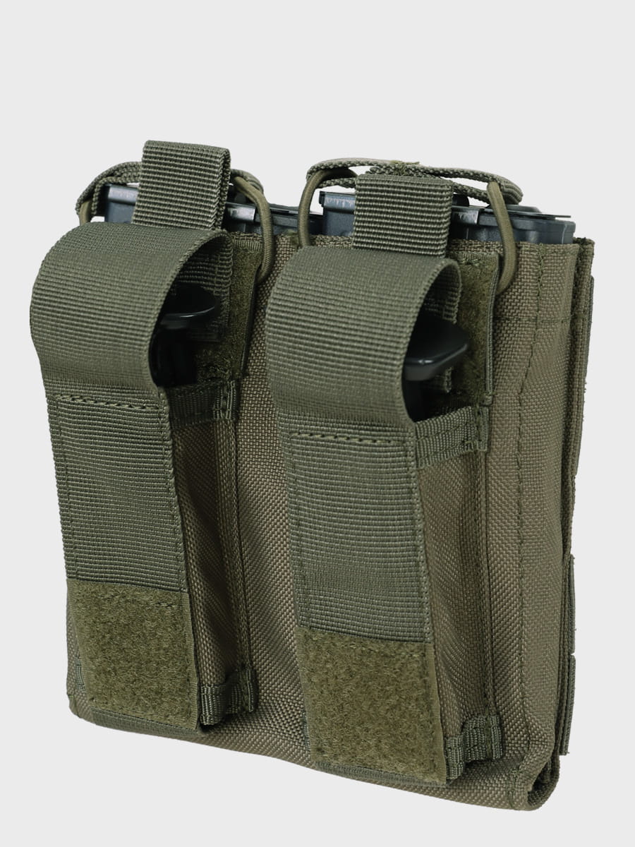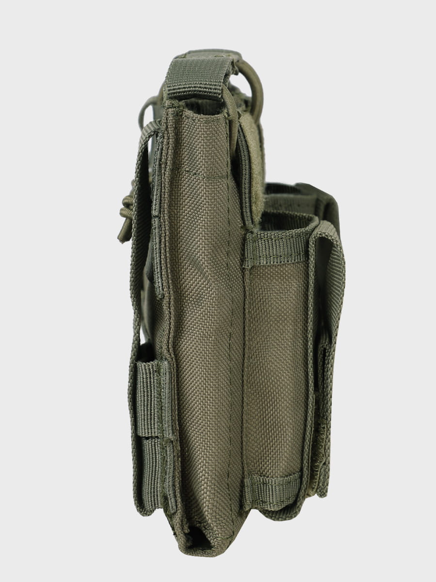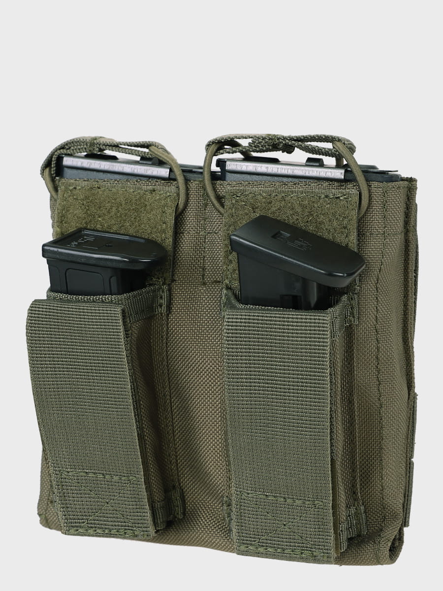Ta ładownica jest idealna dla posiadaczy różnych rodzajów broni, dzięki możliwości przechowywania dwóch magazynków standardów AK74 / BERYL / TANTAL / GROT - 5,56, 5,45 mm oraz dwóch magazynków do pistoletu kalibru 9 mm. To sprawia, że jest niezwykle uniwersalna i przydatna w różnych sytuacjach.