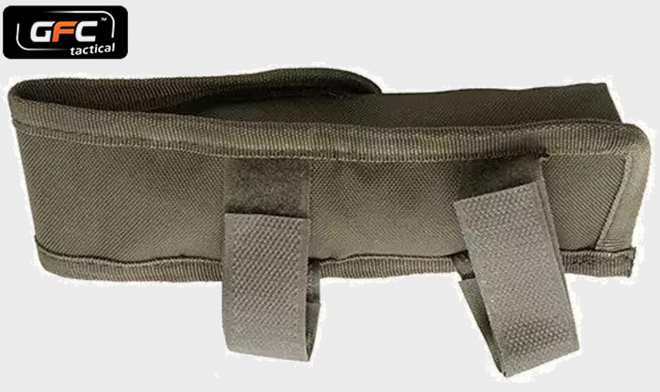 Ładownica na baterię wykonana z mocnego nylonu. Można ją stabilnie zamontować do kolby za pomocą poziomych pasów rzepowych.