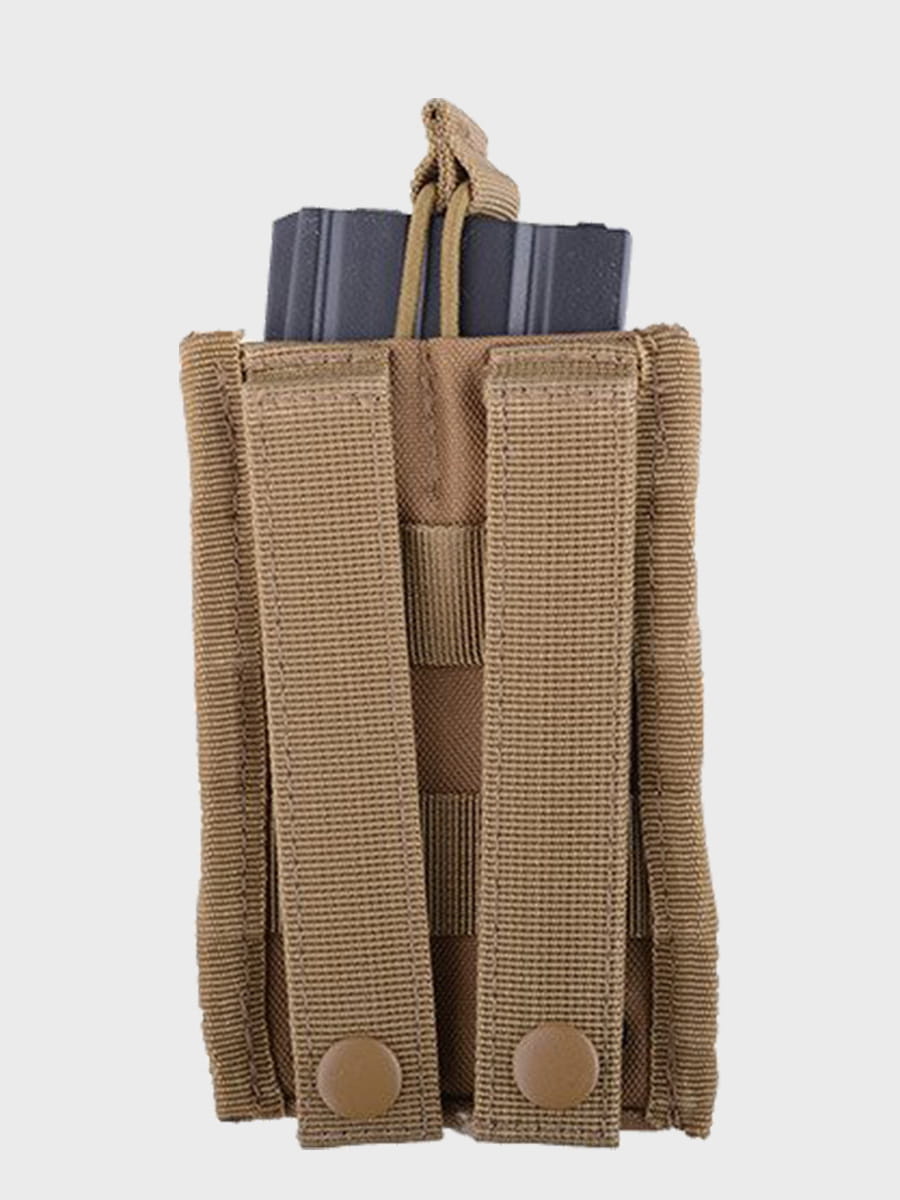 Taśmy systemu Molle umożliwiają mocowanie do pasa, kamizelki taktycznej czy plecaka. Taśmy frontowe pozwalają na łączenie zasobników ze sobą.