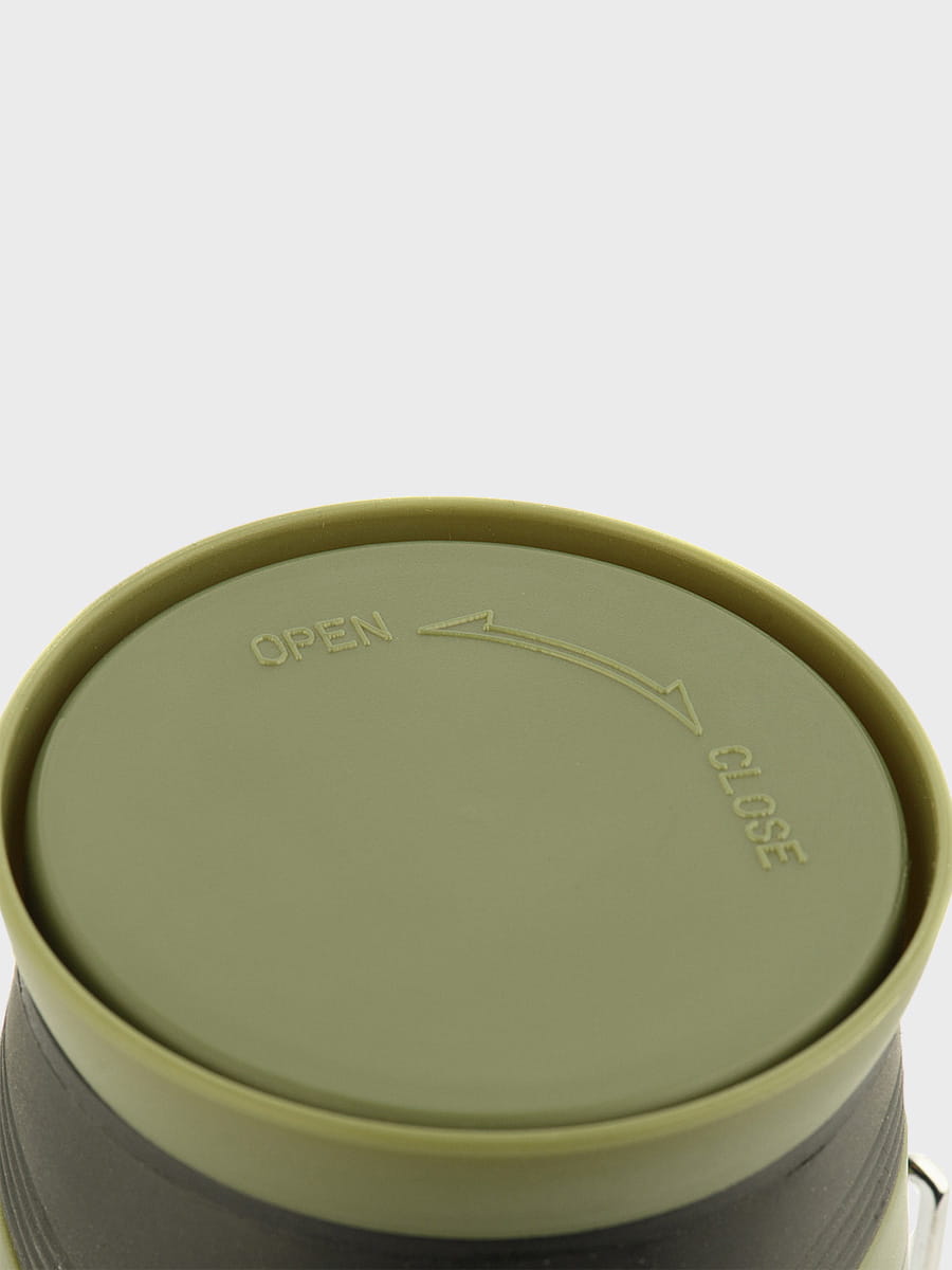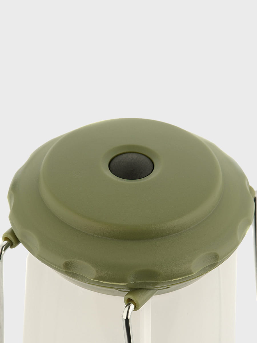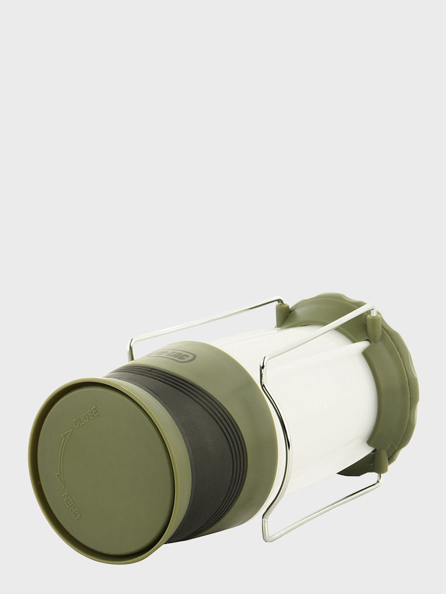 Latarka jest zasilana 4 bateriami (brak w zestawie). Na górze znajdują się dwa metalowe uchwyty, które pozwalają zawiesić latarkę i używać jej jako stacjonarnego źródła światła.