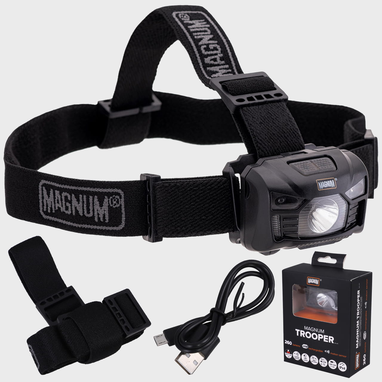 Wygodna latarka czołowa TROOPER marki MAGNUM jest bardzo wytrzymała, wykonana z wysokiej jakości materiałów.