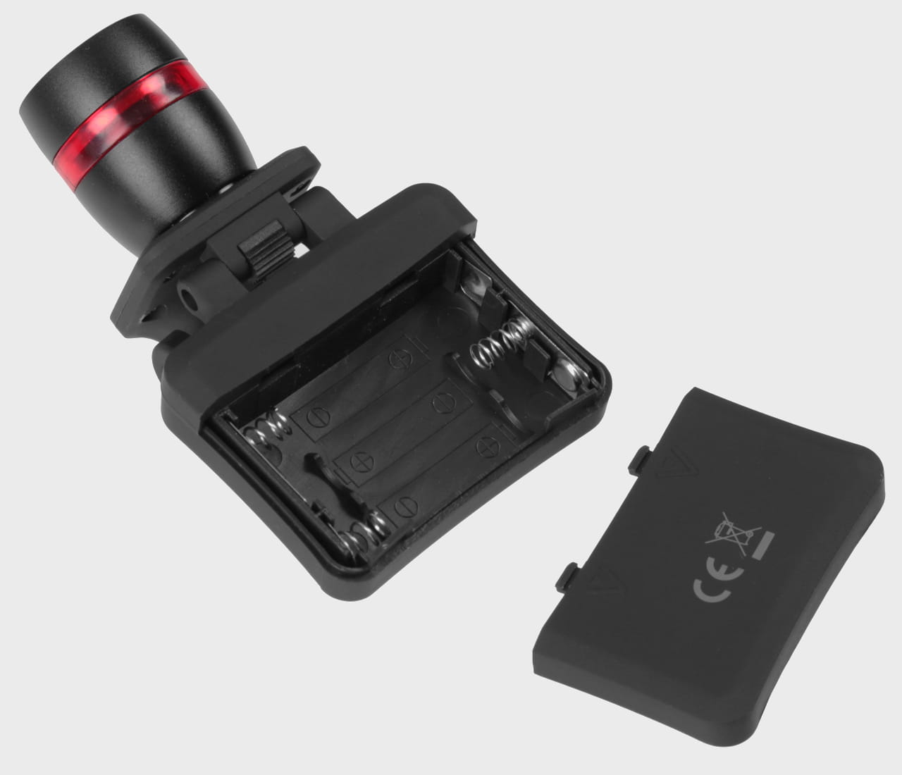 Źródło światła to dioda amerykańskiej marki CREE® o mocy 150lm. Snop światła daje zasięg do 150m. Za zasięg i skupienie wiązki odpowiada soczewka na ruchomej głowicy - funkcja ZOOM. Płynna zmiana ogniskowej w zakresie x1 - x2000 pozwala na skupienie lub rozproszenie wiązki. Czerwony pierścień świetlny na głowicy przydaje się podczas jazdy na rowerze, zapewnia widoczność również z boku.