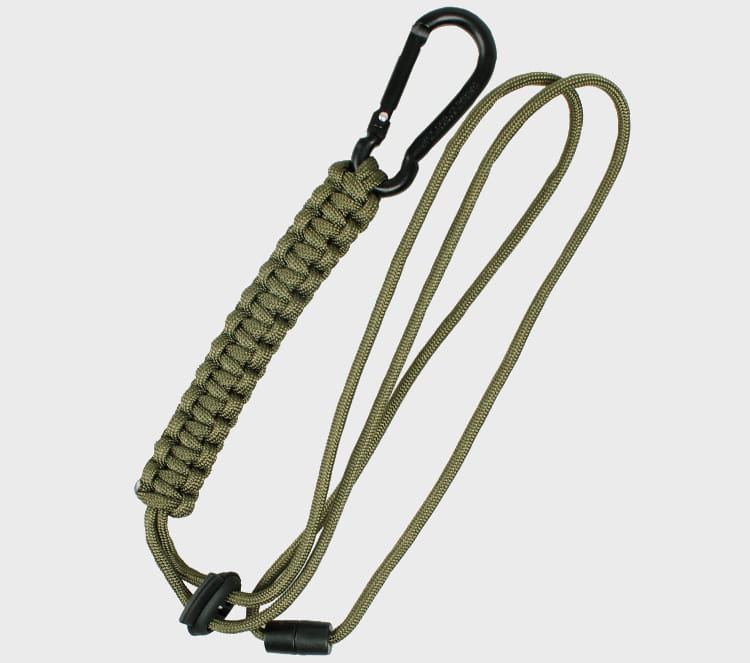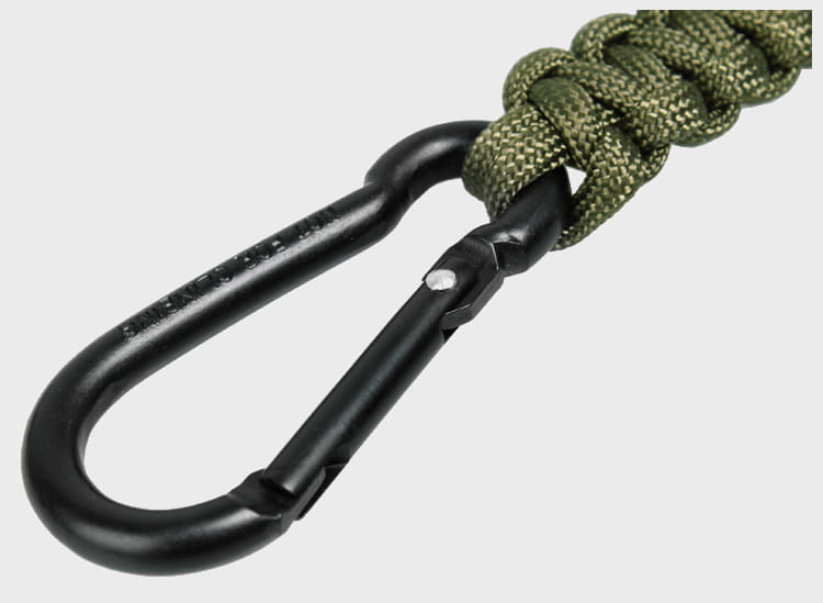 Linka PARACORD Karabińczyk firmy Mil-Tec to smycz z linki spadochronowej wyposażona w karabińczyk, doskonała do zawieszania aparatu, kompasu, scyzoryka, GPS-a lub kluczy.