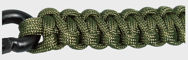 Paracord ma solidny oplot i siedem plecionych rdzeni, charakteryzuje się dużym udźwigiem (obciążenie statyczne aż do 250 kg).