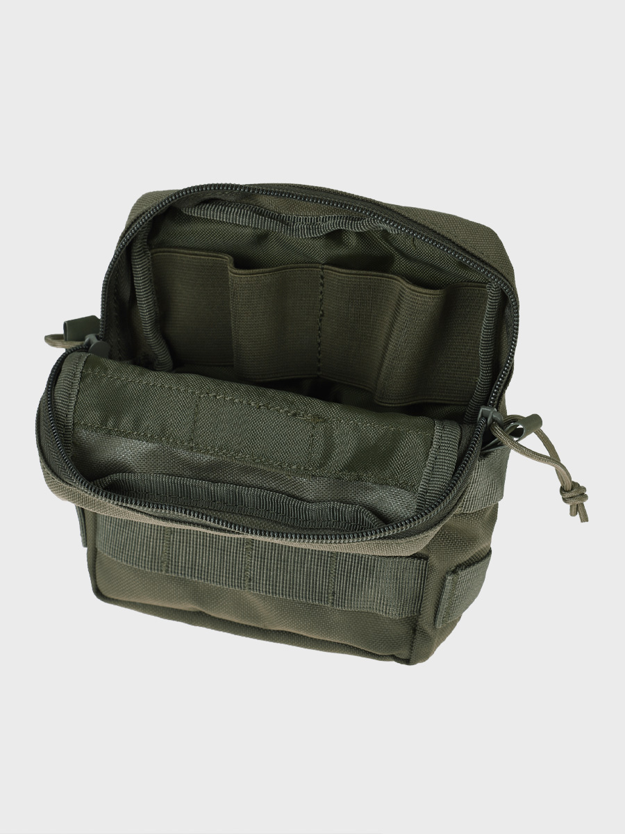 Dodatkowo, zewnętrzna powierzchnia ładownicy została pokryta taśmami MOLLE, umożliwiając mocowanie dodatkowych akcesoriów i rozbudowę ekwipunku.