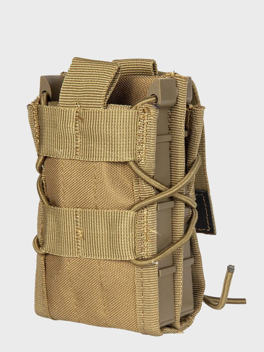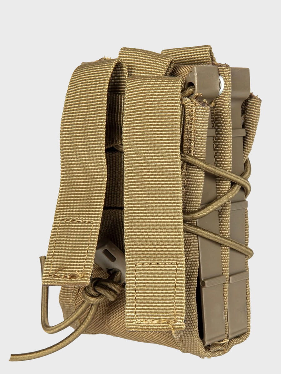 Model pomieści dwa magazynki typu M4/M16 (STANAG) lub do karabinka AK. Wewnątrz ładownicy umieszczono usztywniającą wkładkę z polimeru, która dodatkowo stabilizuje przenoszone magazynki.