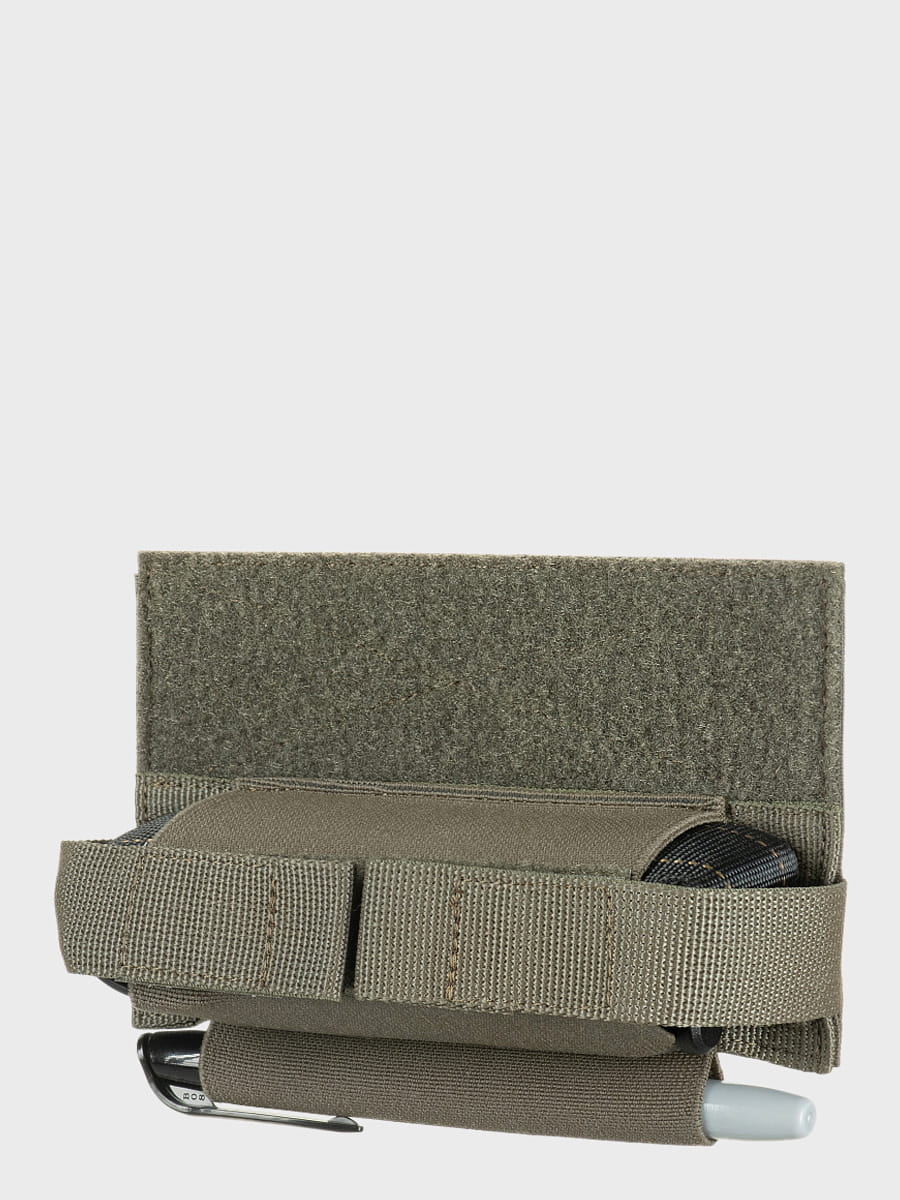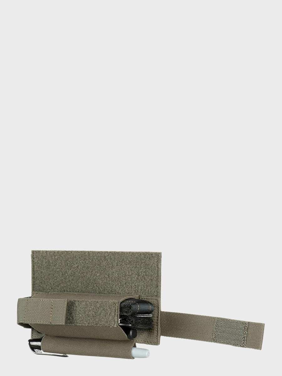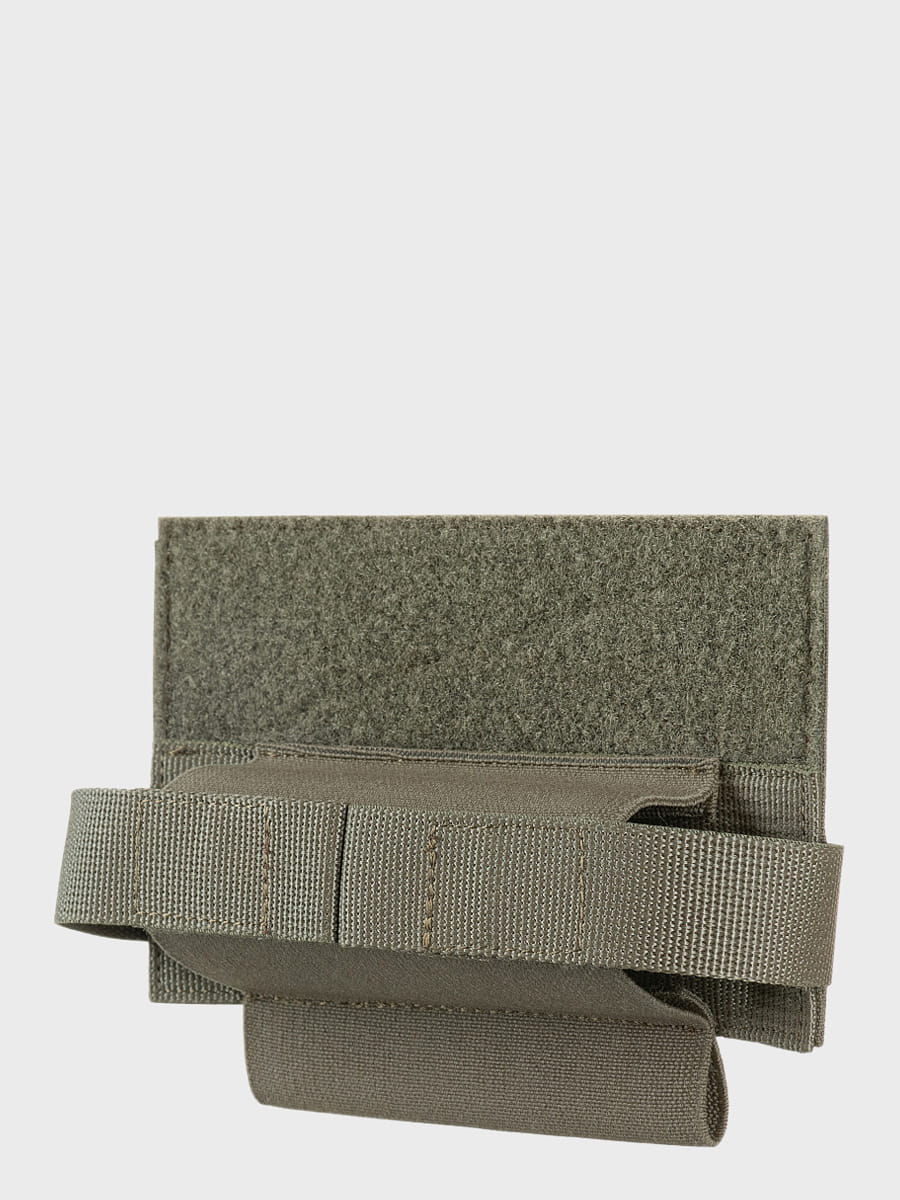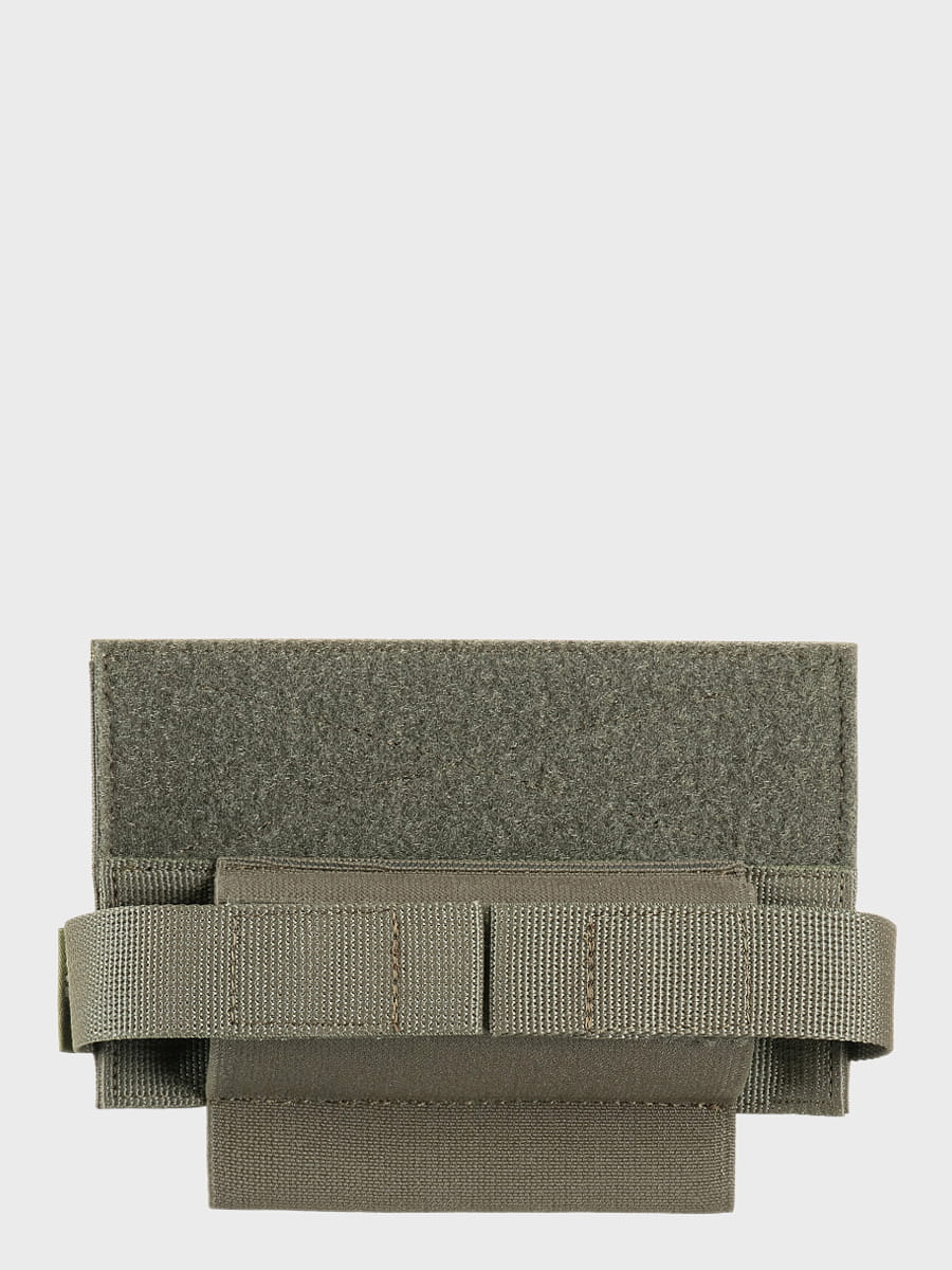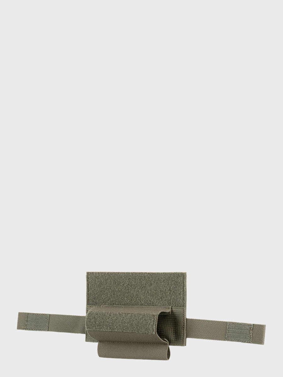 Model ten mocowany jest do przedniego panelu Velcro, umieszczonego pod klapą kamizelki taktycznej.