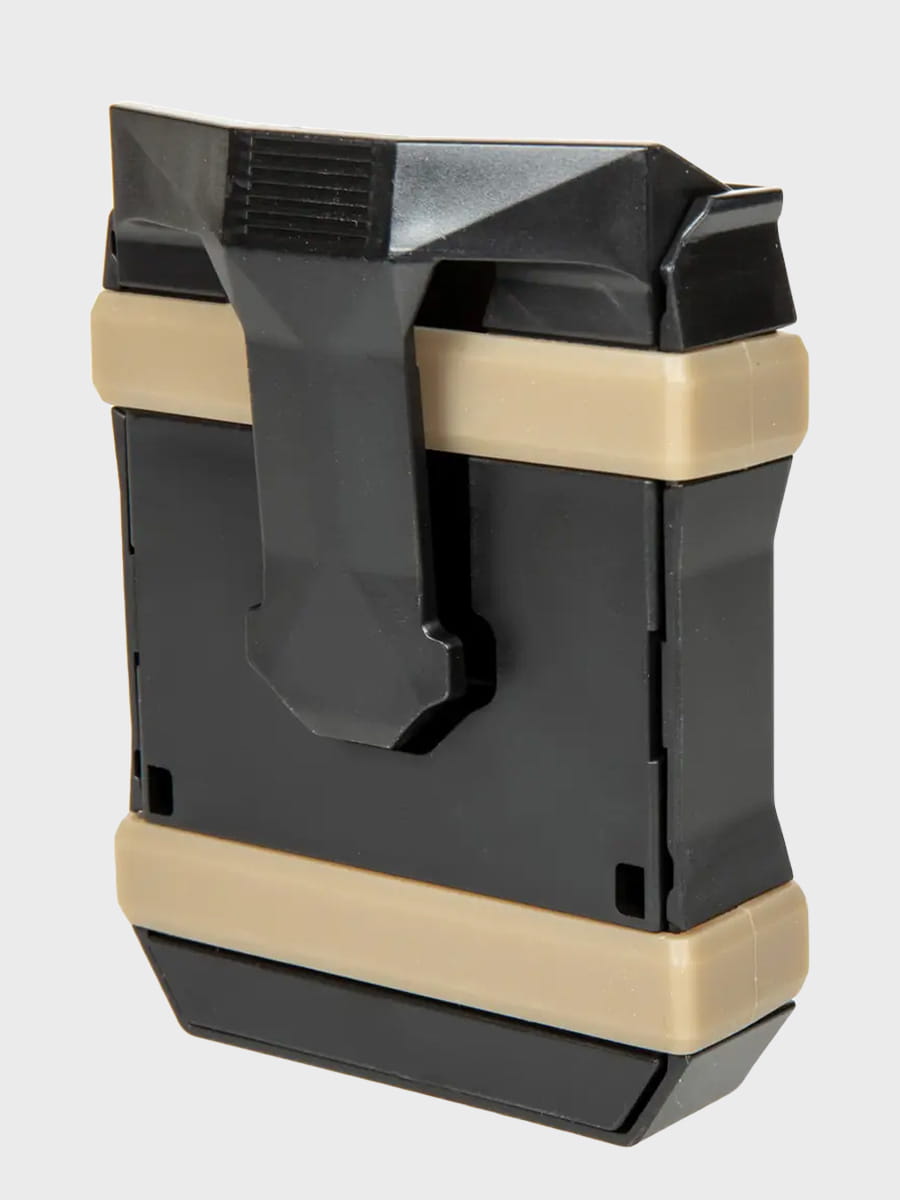 Ładownica typu fast została wykonana z wytrzymałego tworzywa sztucznego, co zapewnia jej długotrwałą trwałość i odporność na uszkodzenia. Materiał ten jest lekki, a jednocześnie bardzo solidny, co sprawia, że ładownica doskonale sprawdza się w trudnych warunkach terenowych i bojowych.