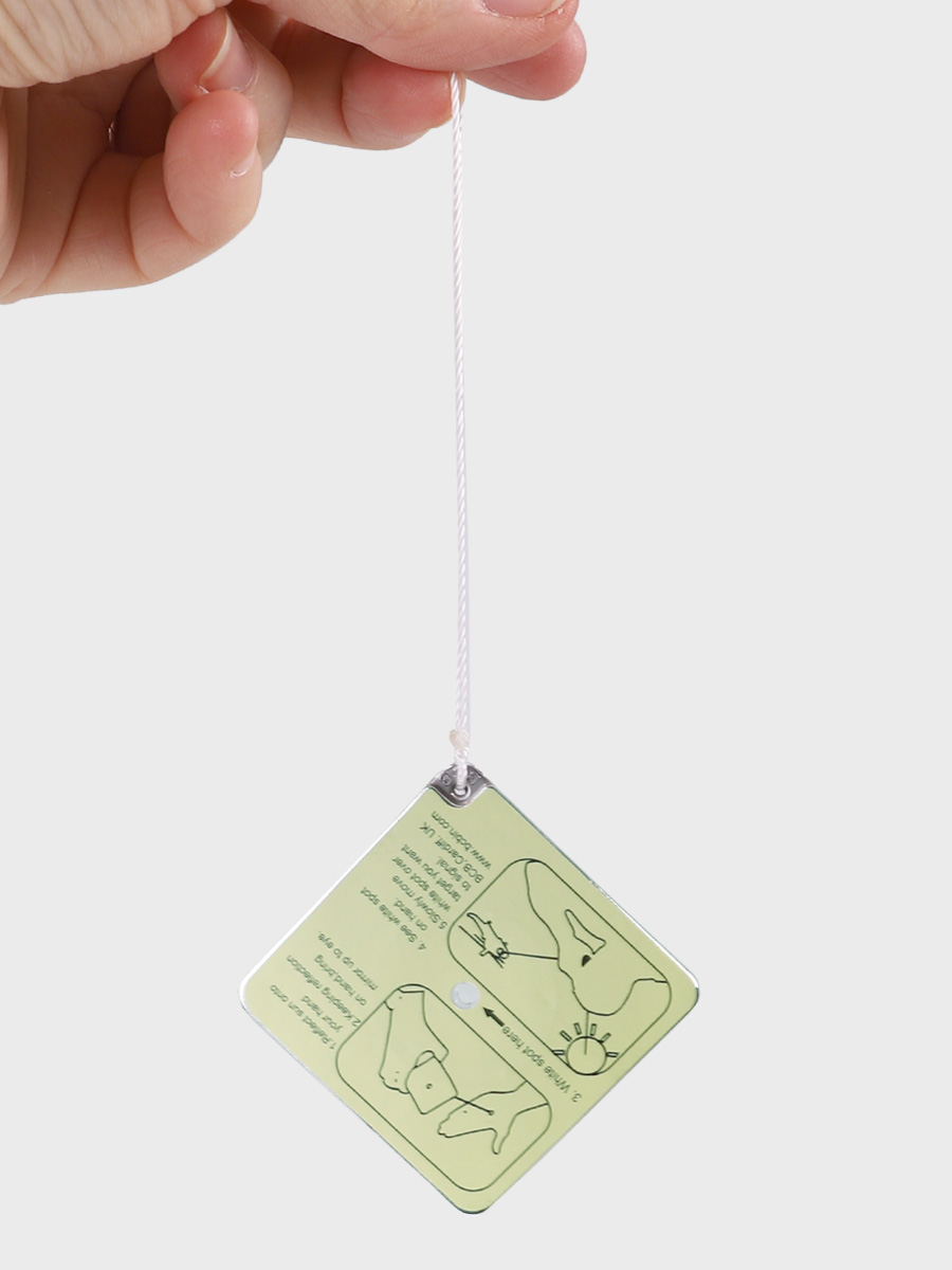 Do lusterka dołączona jest linka, która umożliwia noszenie go na szyi lub przymocowanie do plecaka czy elementów wyposażenia, chroniąc przed zgubieniem. Niewielkie rozmiary i mała waga sprawiają, że bez problemu zmieści się w kieszeni, apteczce, zestawie survivalowym czy plecaku turystycznym.