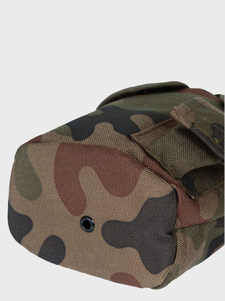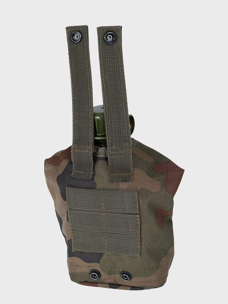 Na tyle pokrowca znajdują się uchwyty umożliwiające przypięcie manierki do pasa lub oporządzenia dodatkowo u dołu pokrowca nabito nit do odprowadzania wody z wnętrza pokrowca w wypadku całkowitego zalania.
