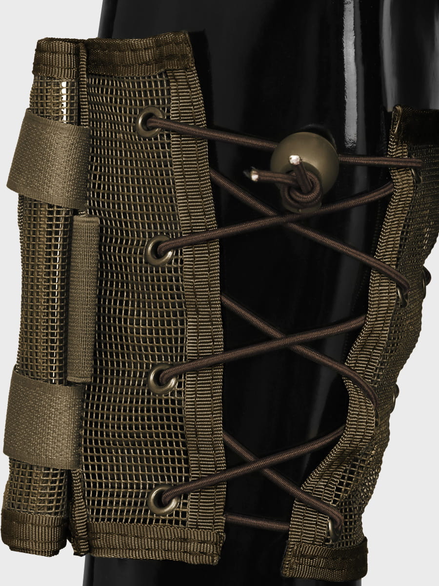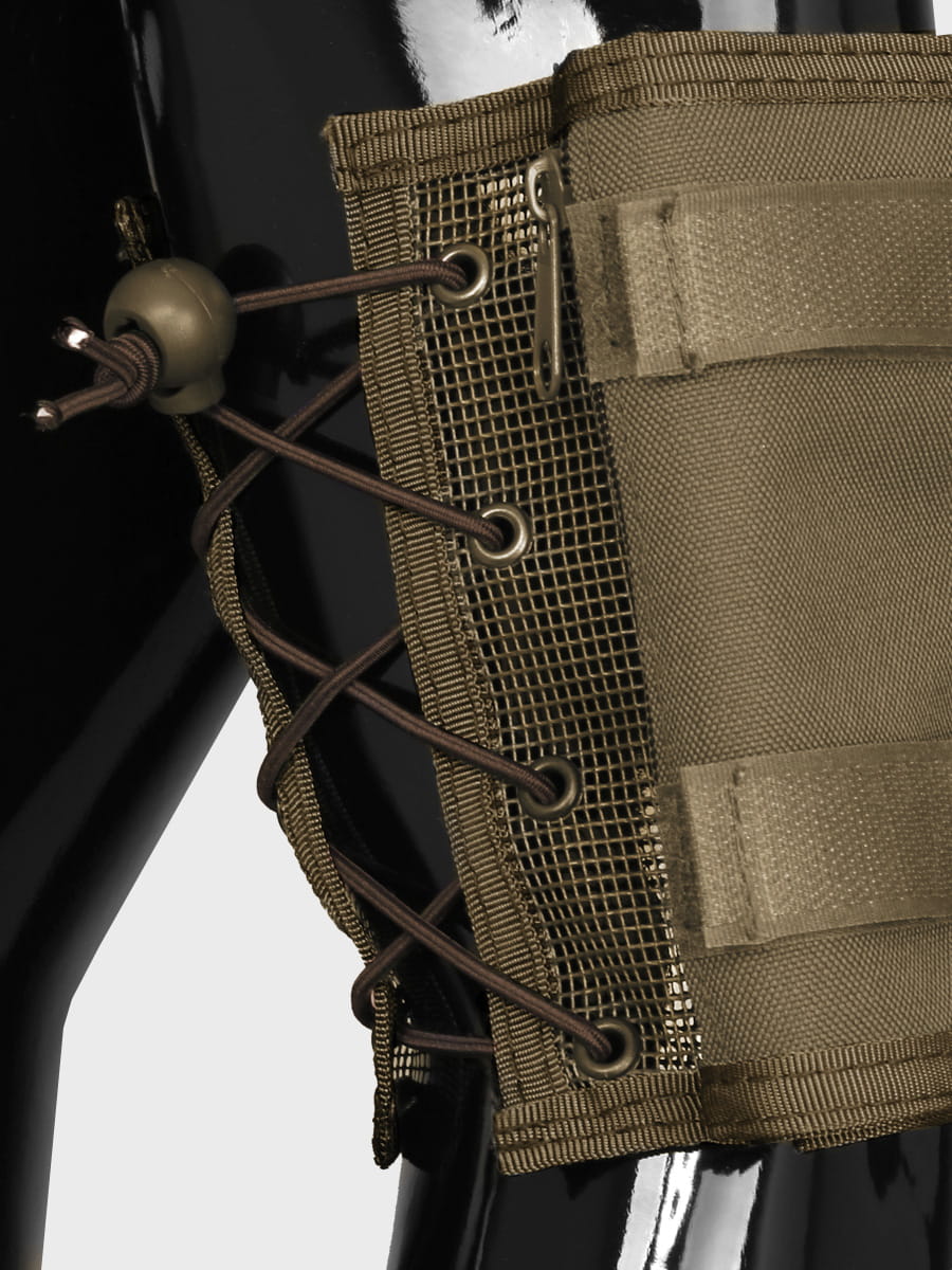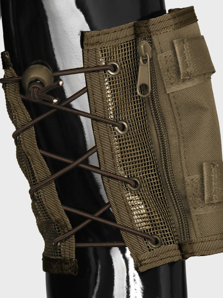 Wykonany został z siatki poliestrowej zapewniającej optymalną przepuszczalność powietrza, co zapobiega otarciom i nadmiernemu poceniu się ramienia. Oprócz przezroczystego winylowego okienka na mapę posiada również portfel na bilon zapinany zamkiem błyskawicznym oraz 2 uchwyty na długopisy.