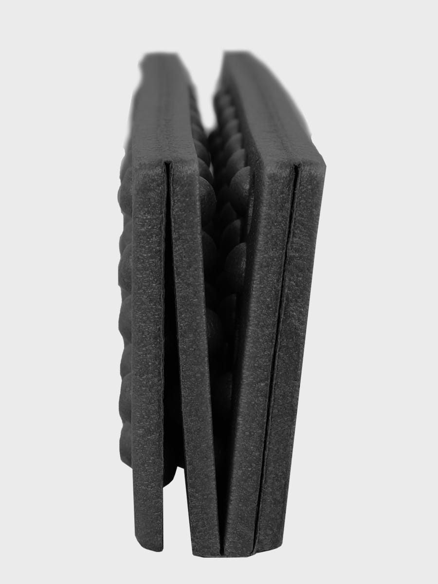 Wypustki dwukrotnie zwiększają fizyczną grubość maty, dzięki czemu jest bardziej miękka i lepiej izoluje. Po złożeniu wypustki chowają się jedna w drugą, co pozwala na zaoszczędzenie dodatkowego miejsca. System nacięć i zawiasów daje możliwość składania do kompaktowych wymiarów.